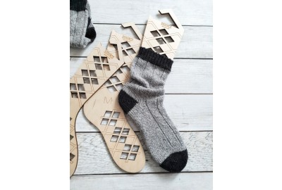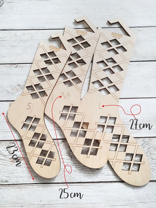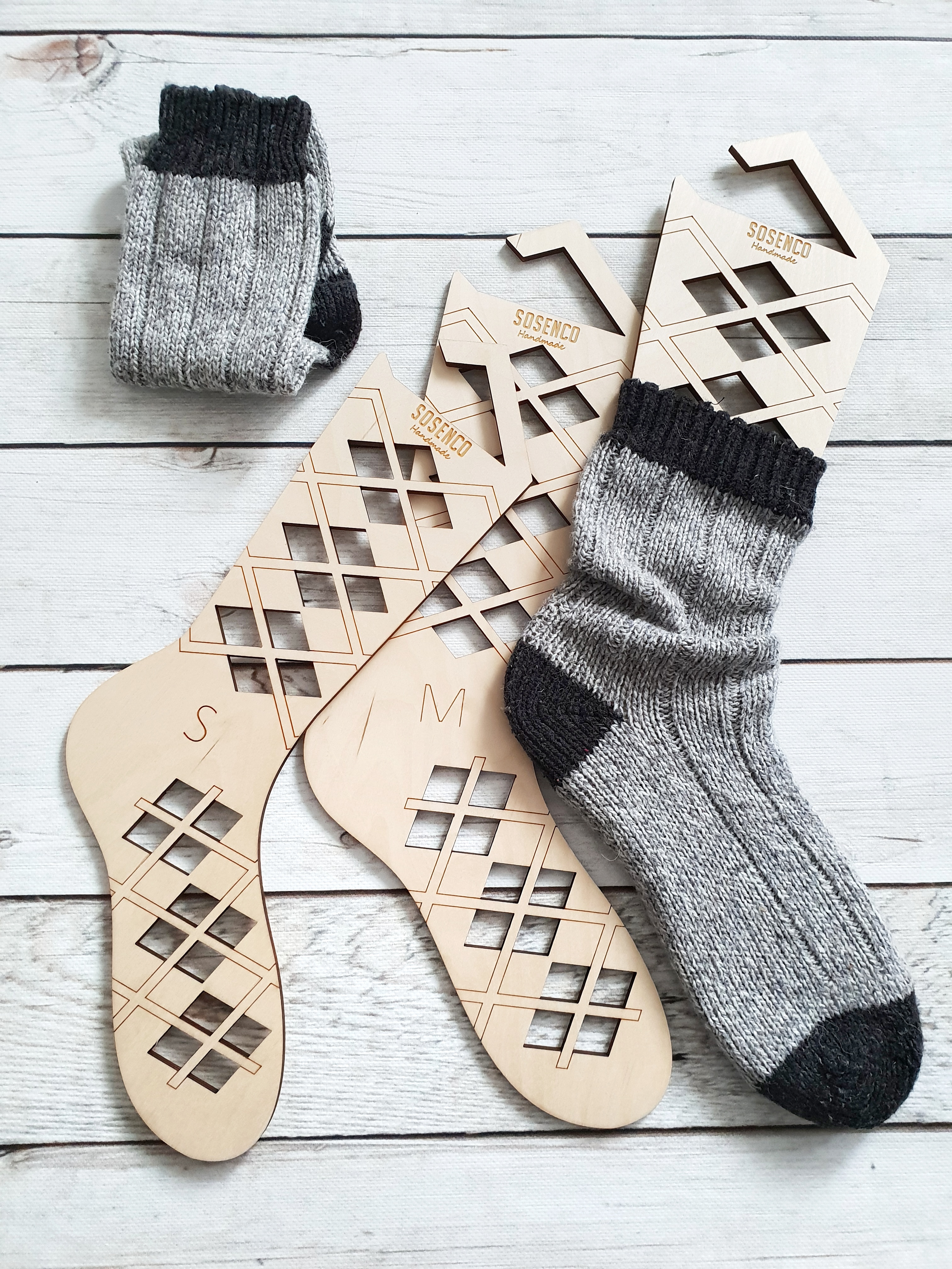 Bbaza do skaretek ułatwia dzierganie, utrzymanie prawidłowego wzoru i formy oraz blokowania skarpet. Można je także wykorzystać do eksponowania czy fotografowania gotowych skarpetek