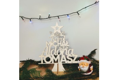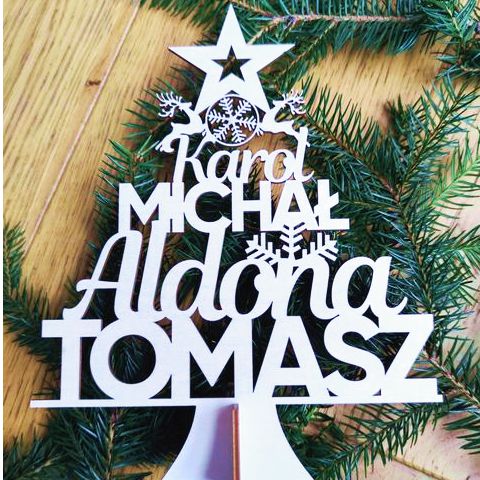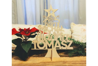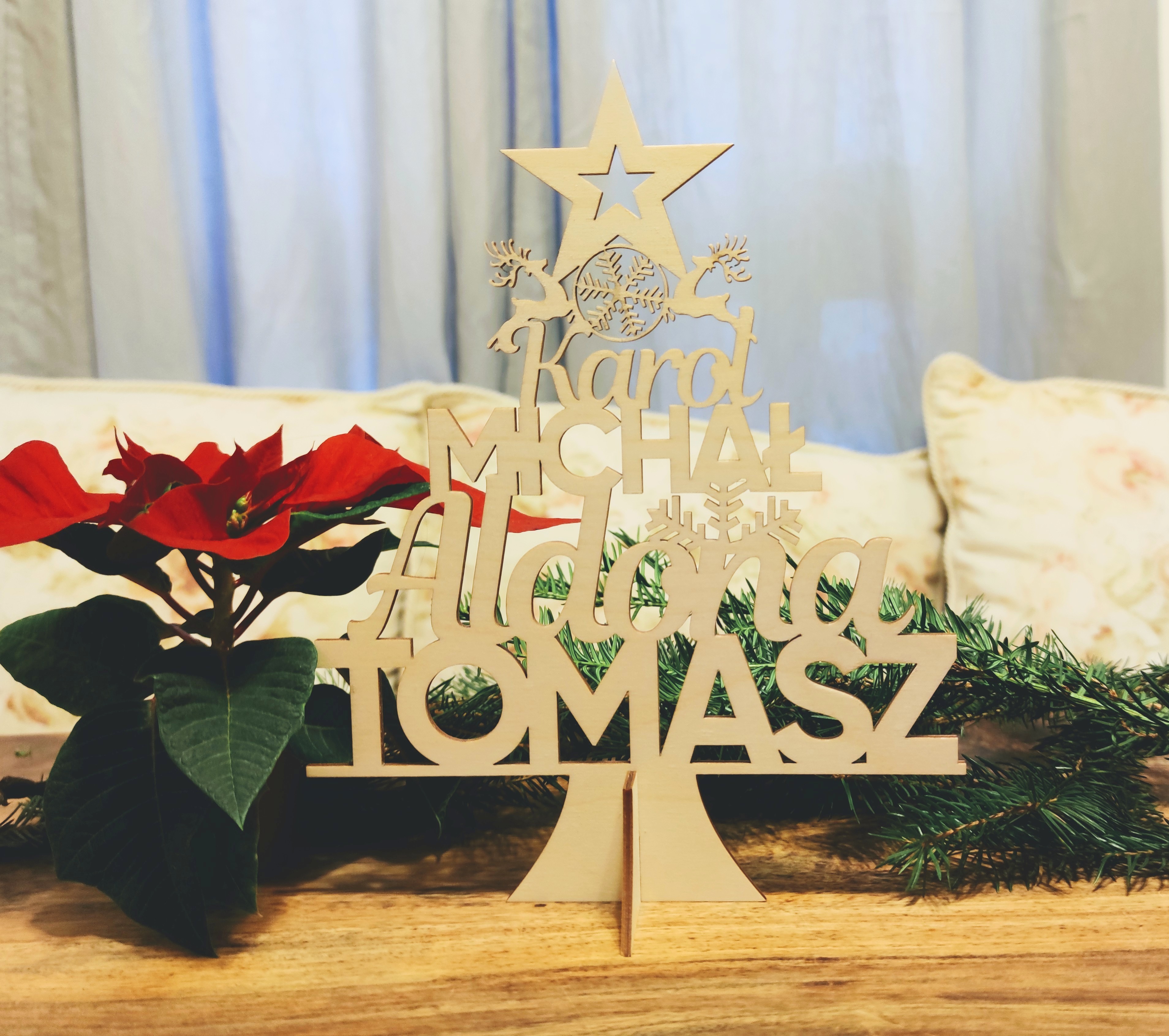 Niepowtarzalna drewniana ozdoba świąteczna. Personalizowana imionami.
