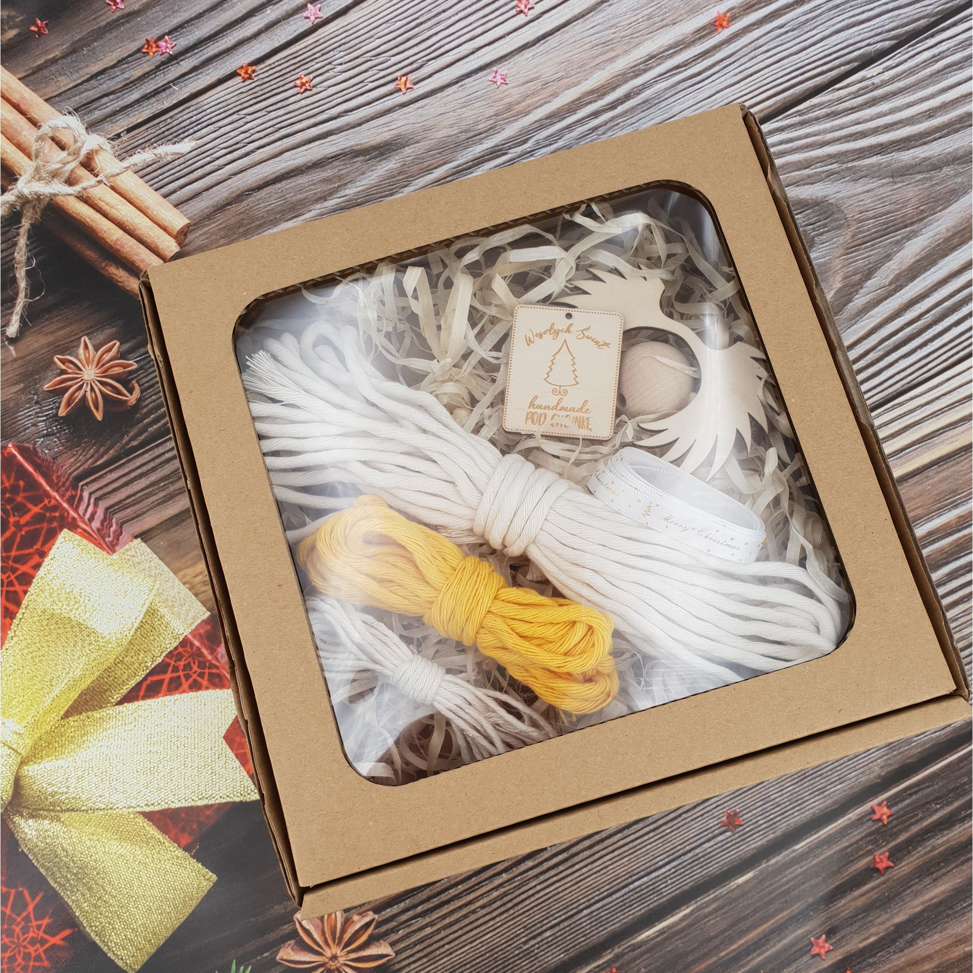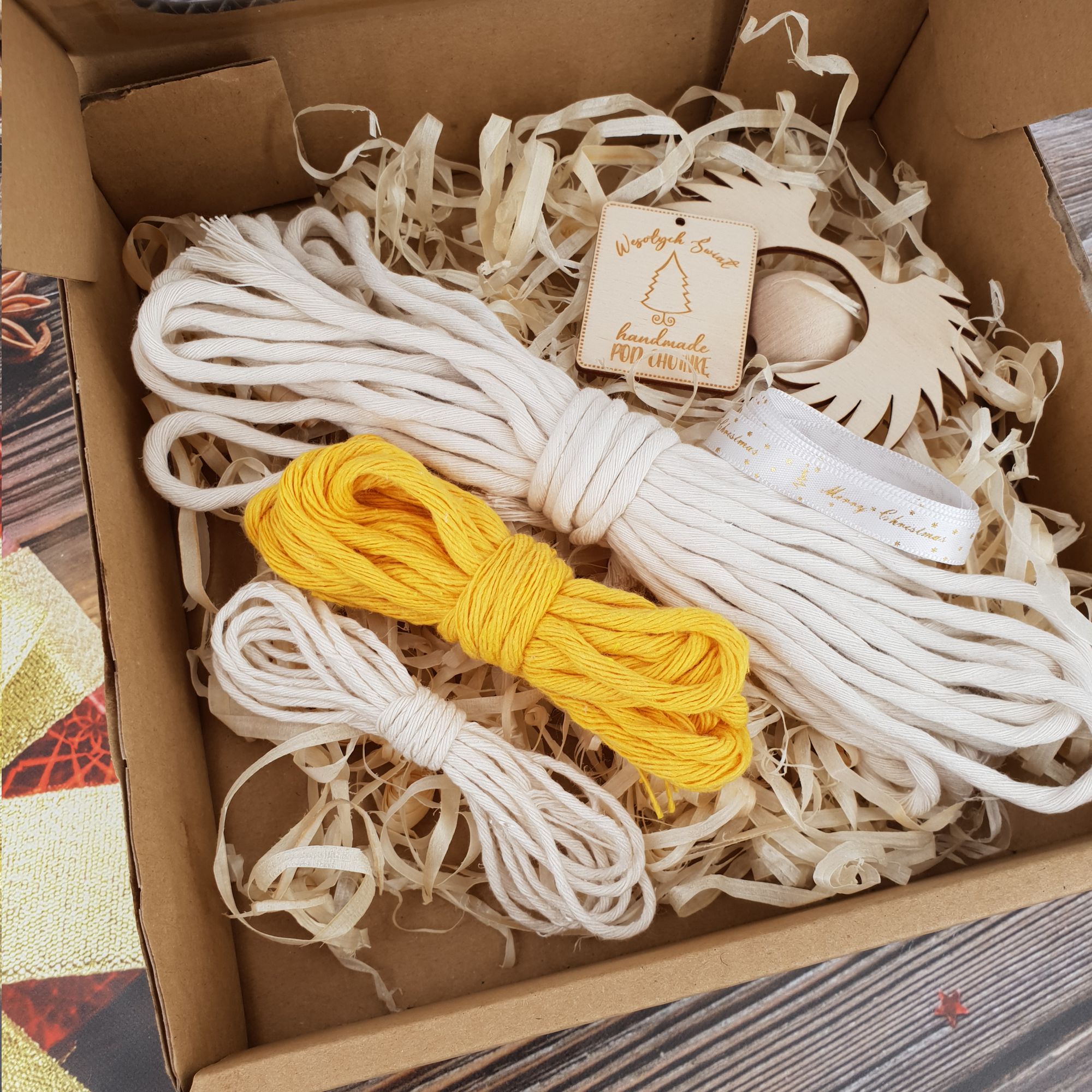 Z tego zestawu można samodzielnie wykonać pięknego anioła z makramy - wielkość około 20 cm.