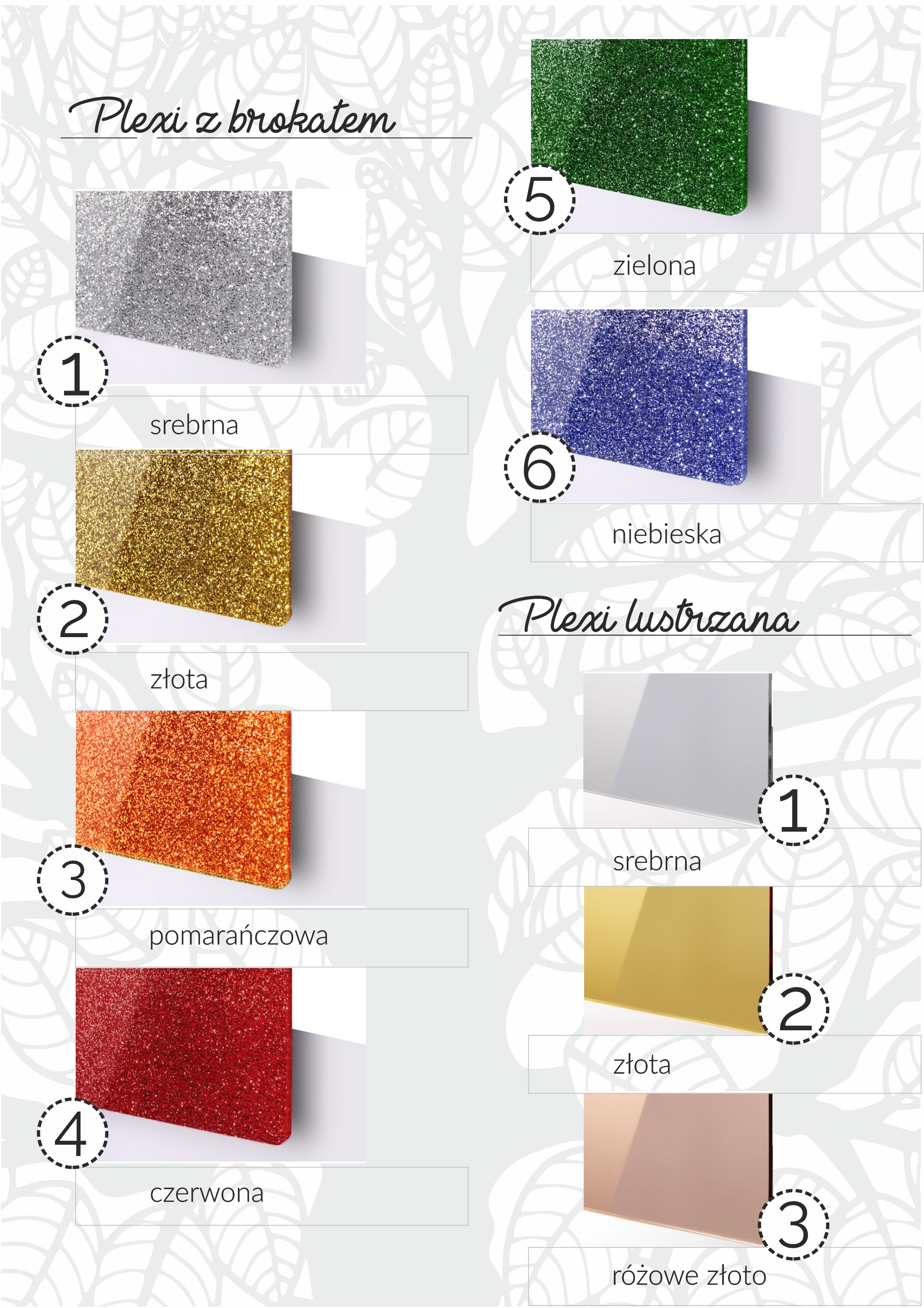 W polu do personalizacji prosimy o podanie imienia oraz koloru plexi ze wzornika.
