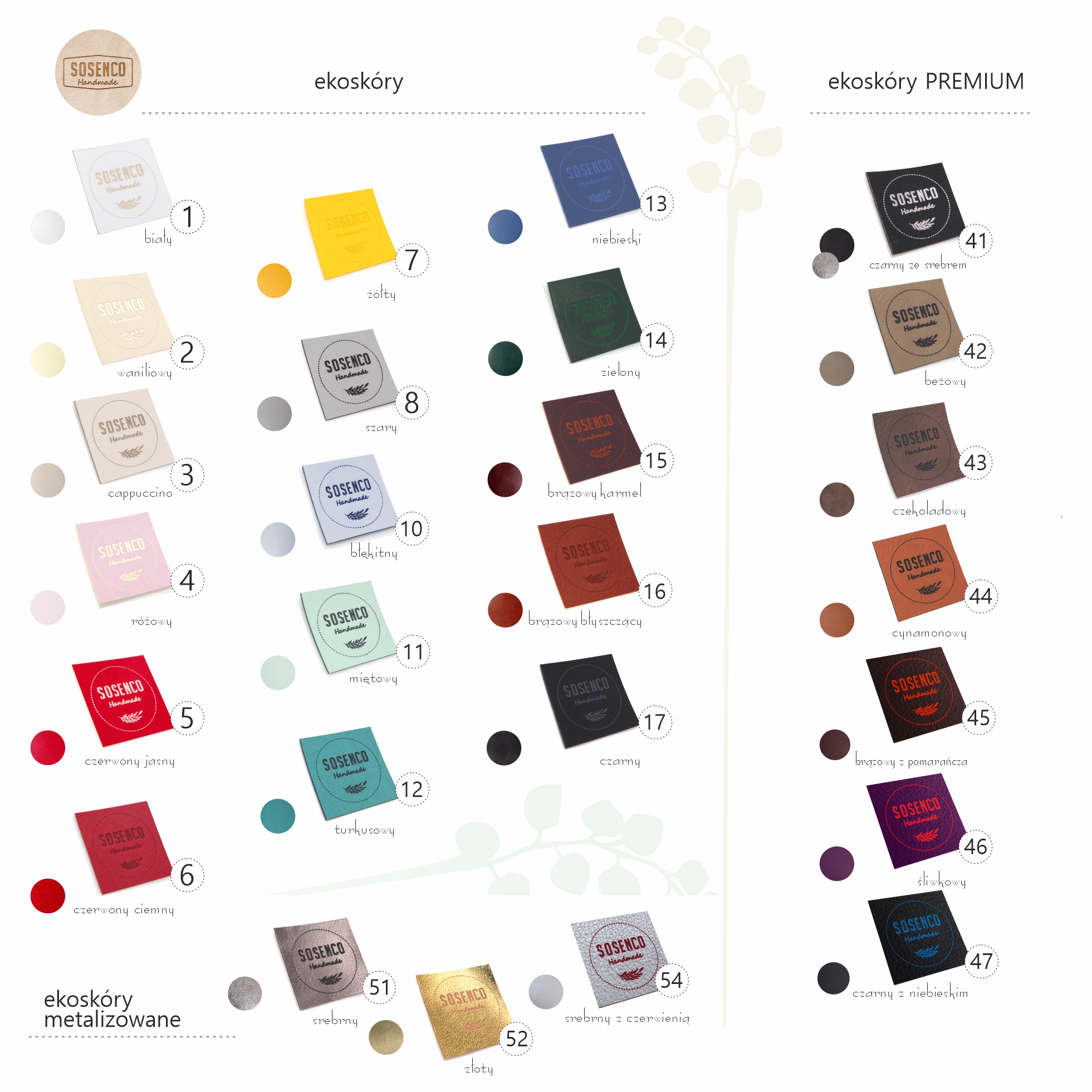 W przypadku braku podania koloru ekoskóry i czcionki - wykonamy na losowo wybranym materiale i przez nas wybranej czcionce, z otworami.
