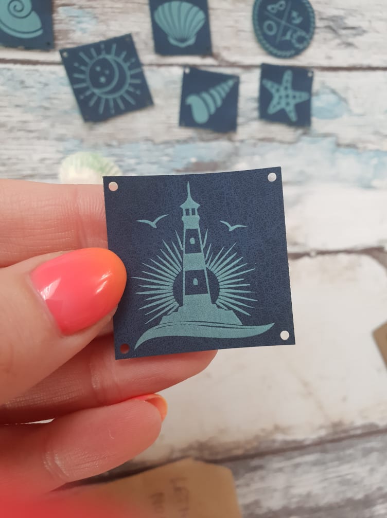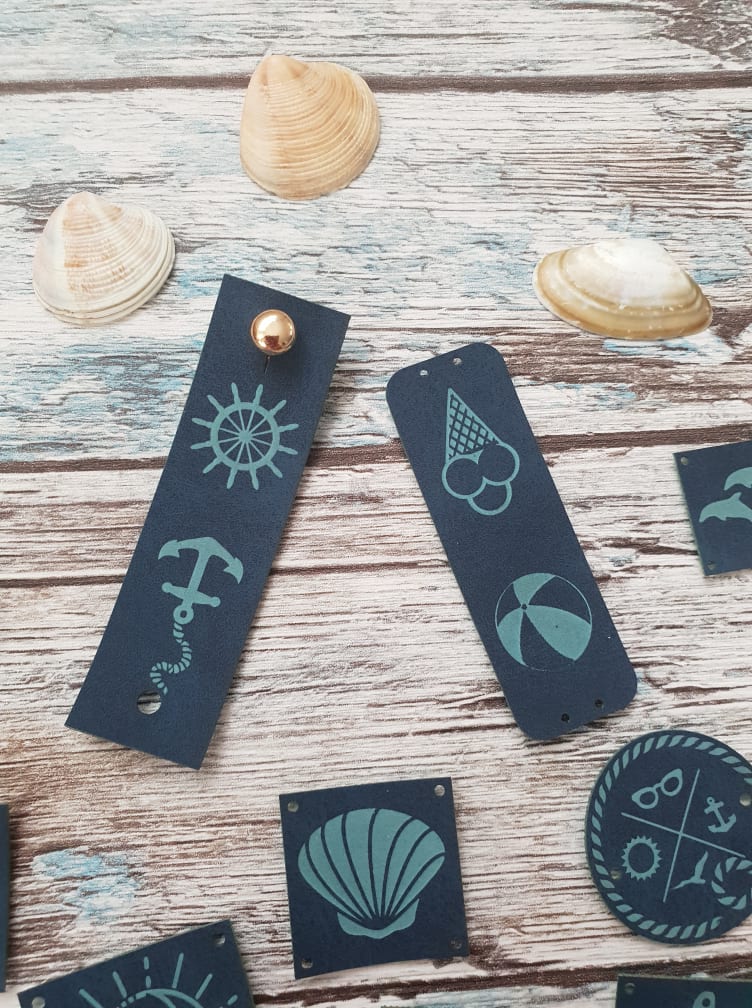 Zestaw 11 gotowych metek z ekoskóry w kolorze granatowym