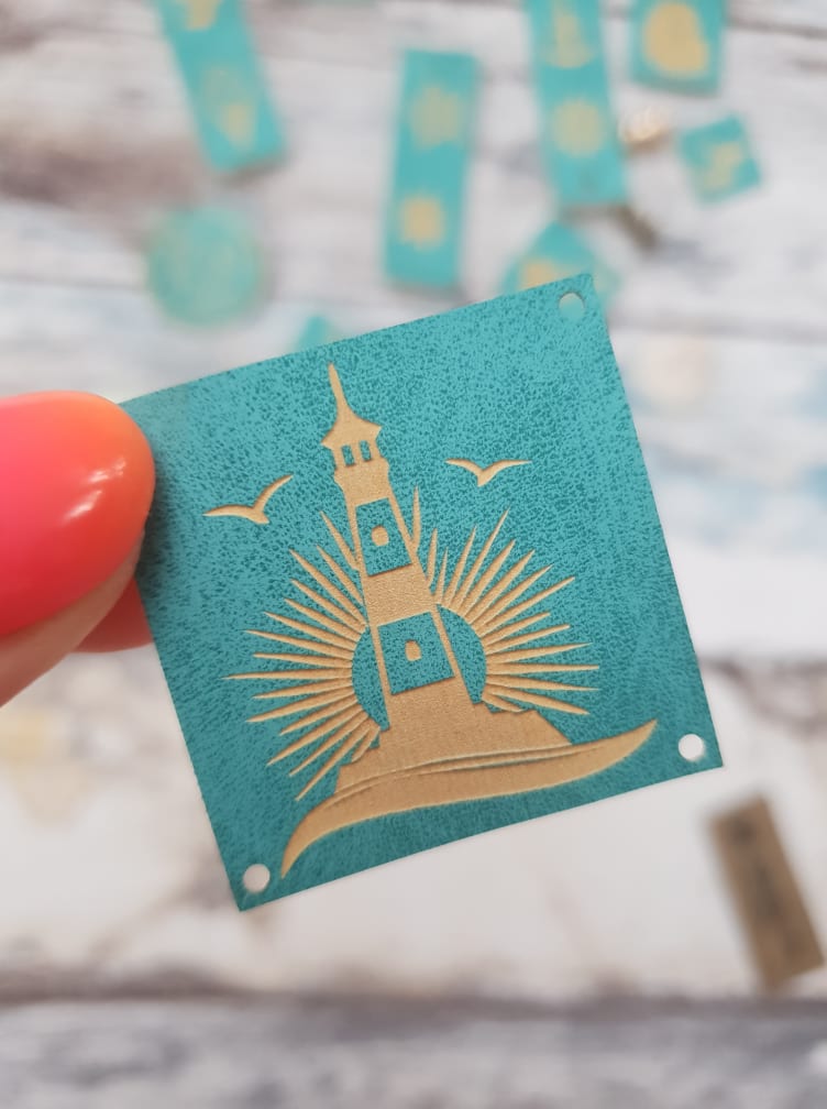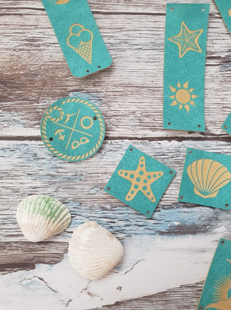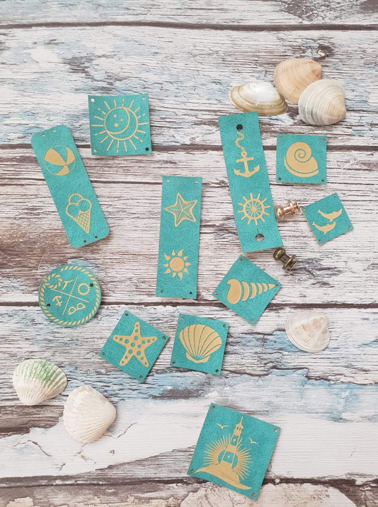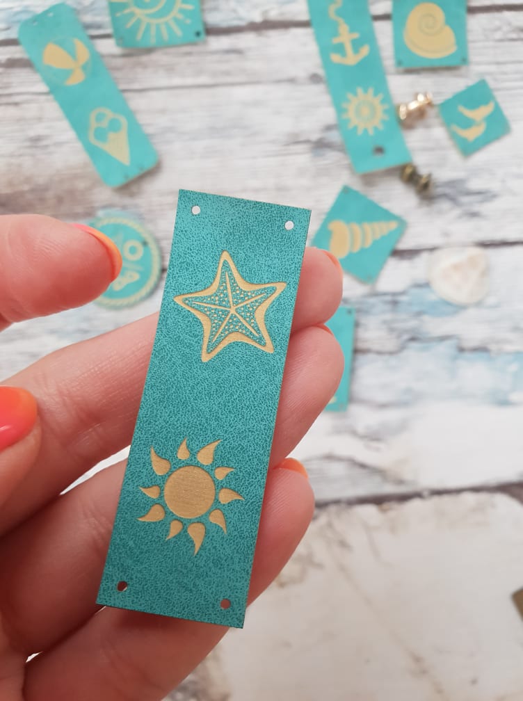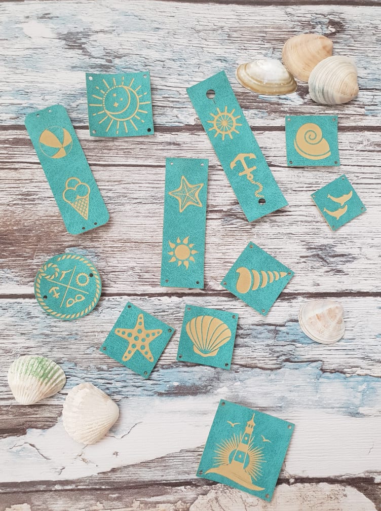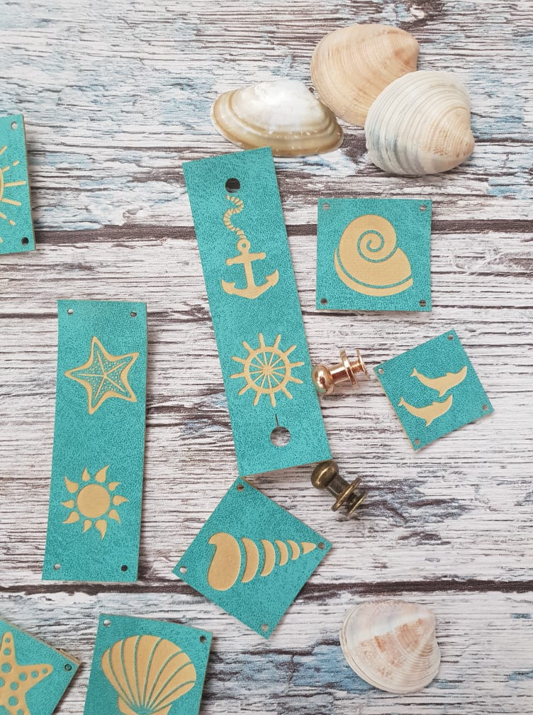 Zestaw 11 gotowych metek z ekoskóry w kolorze turkusowym