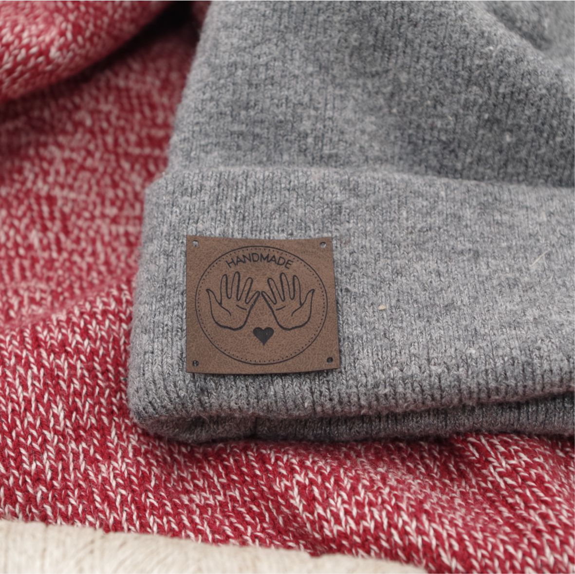 Zestaw 10 gotowych metek z ekoskóry - hand knitting ręce.
