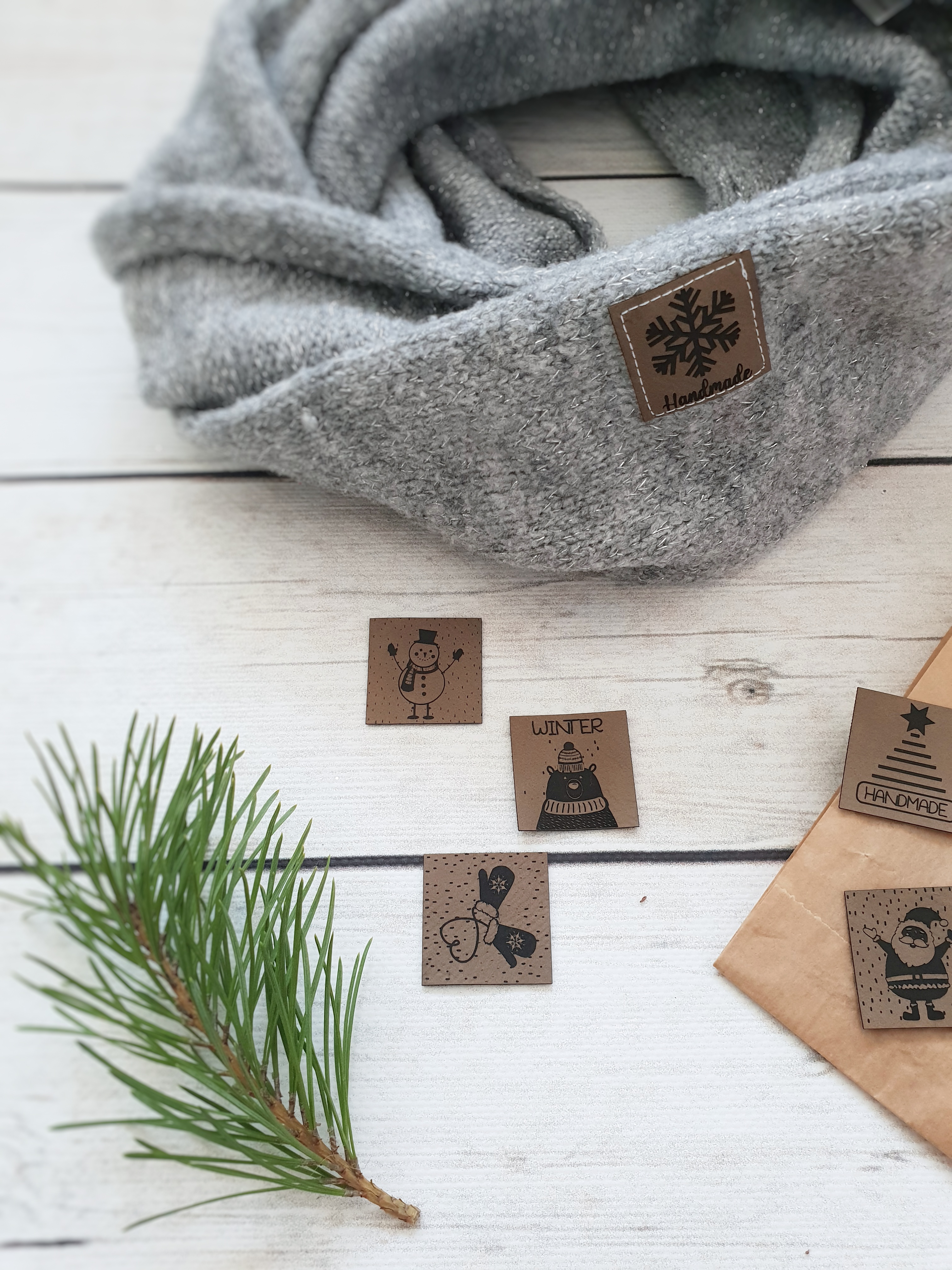 Gotowa metka z ekoskóry z grafiką "Śnieżynka"