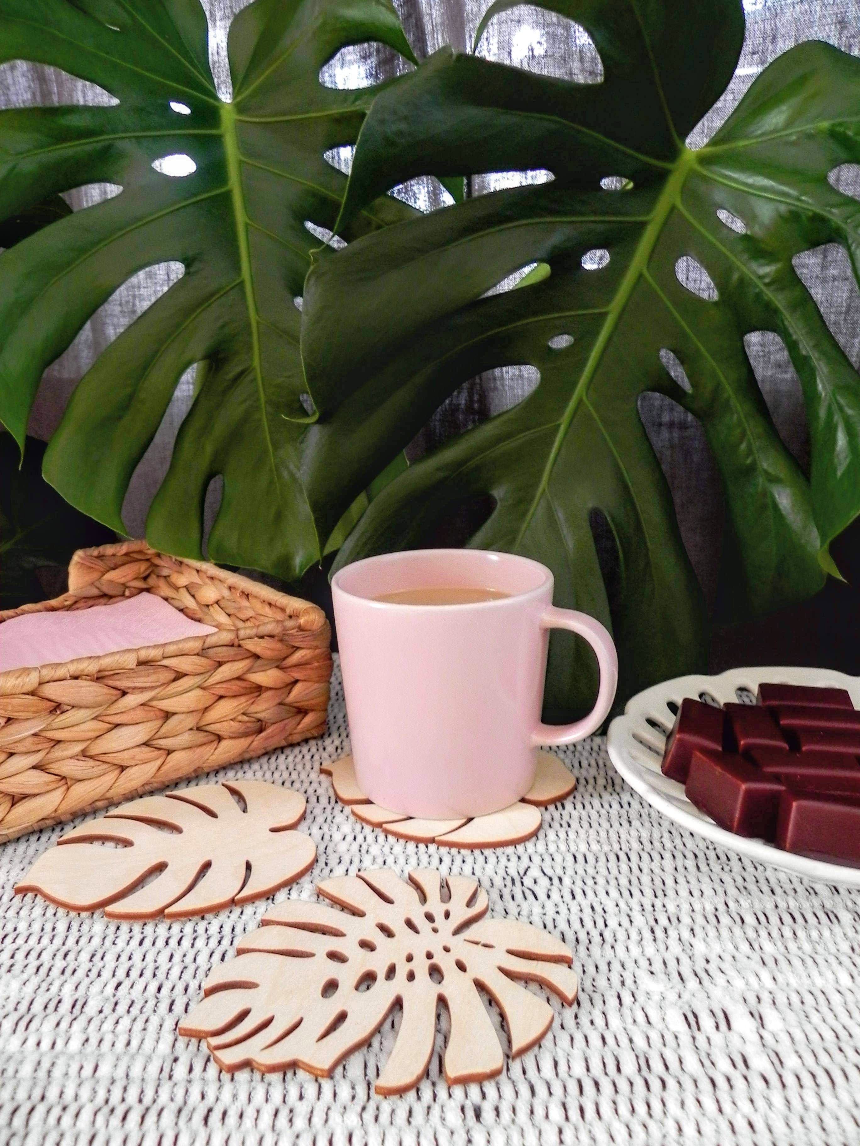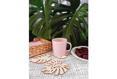 Zestaw 4 podkładek pod kubki w kształcie liści Monstera - w dwóch wzorach.