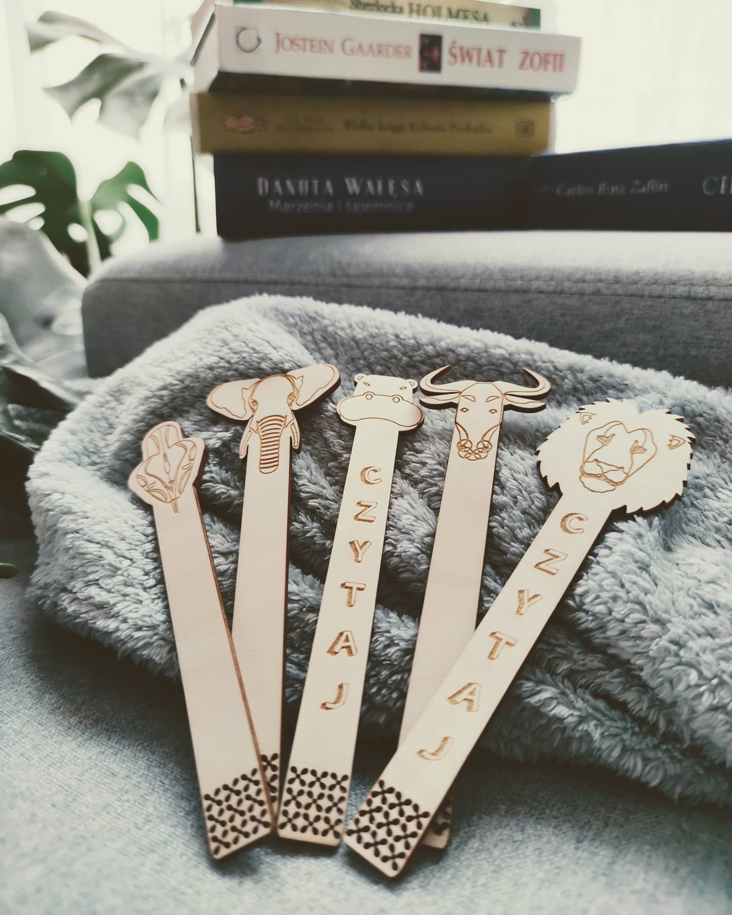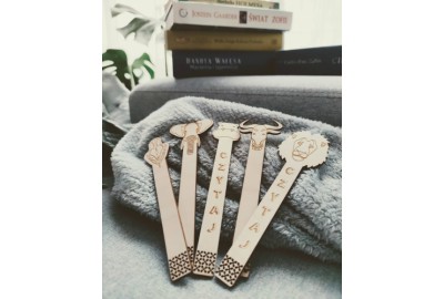 Zakładki wykonane są z drewna (3mm sklejka brzozowa) metodą cięcia laseroweg.