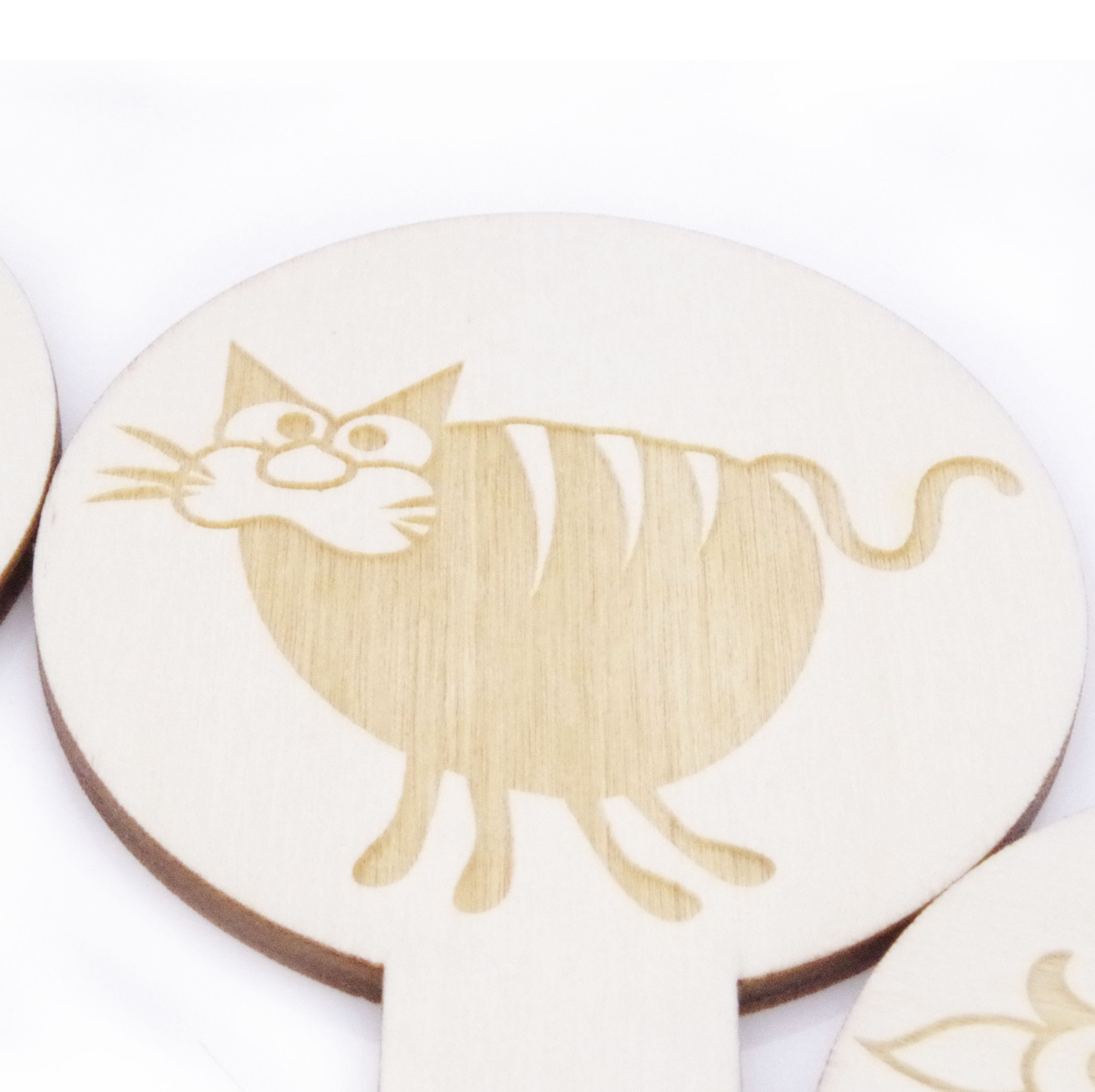 Zakładki wykonane są z drewna (3mm sklejka brzozowa) metodą cięcia laseroweg.