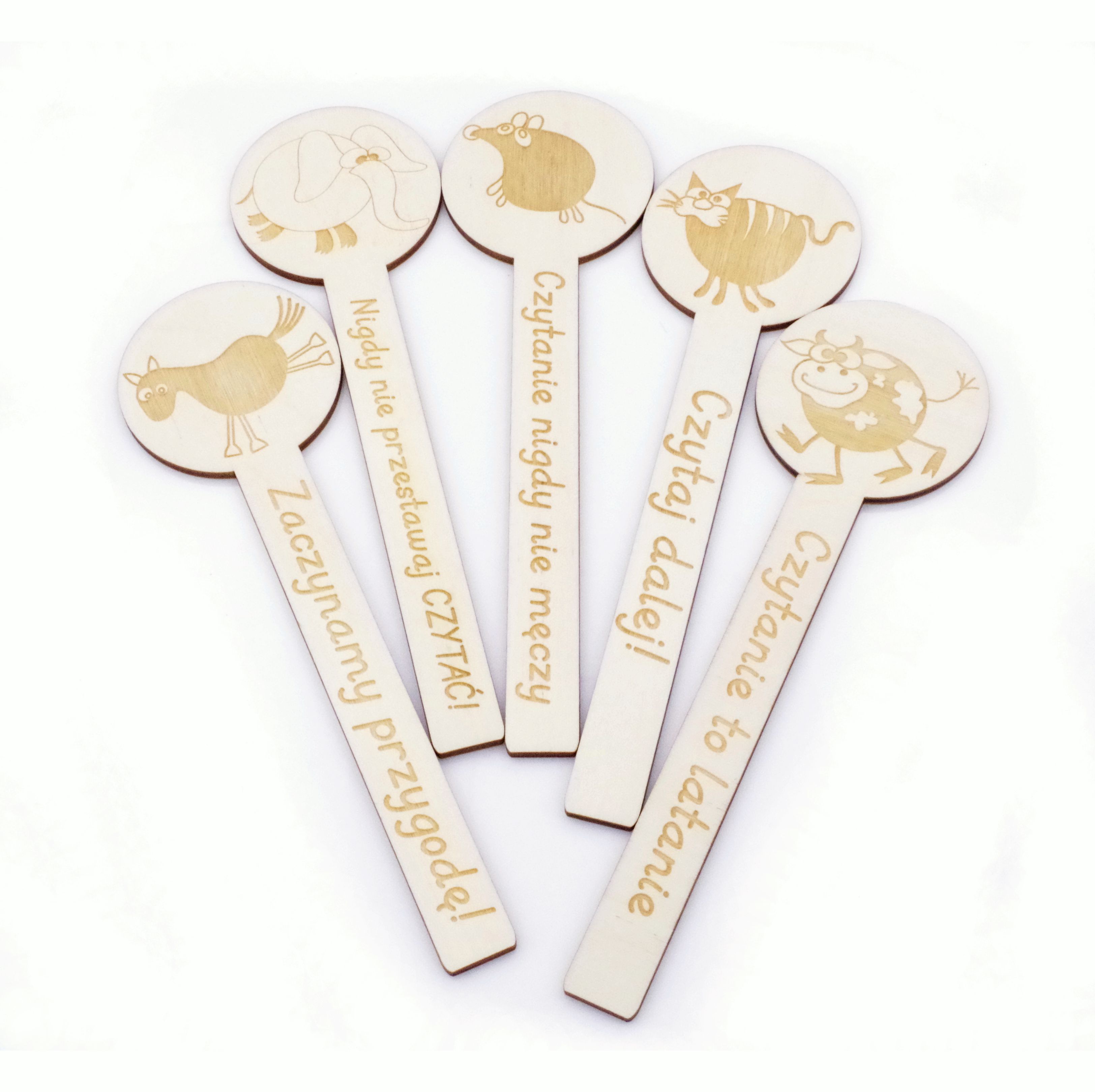 Zestaw 5 różnych zakładek do książek w motywie zwierząt.