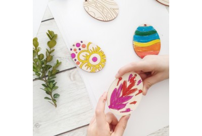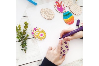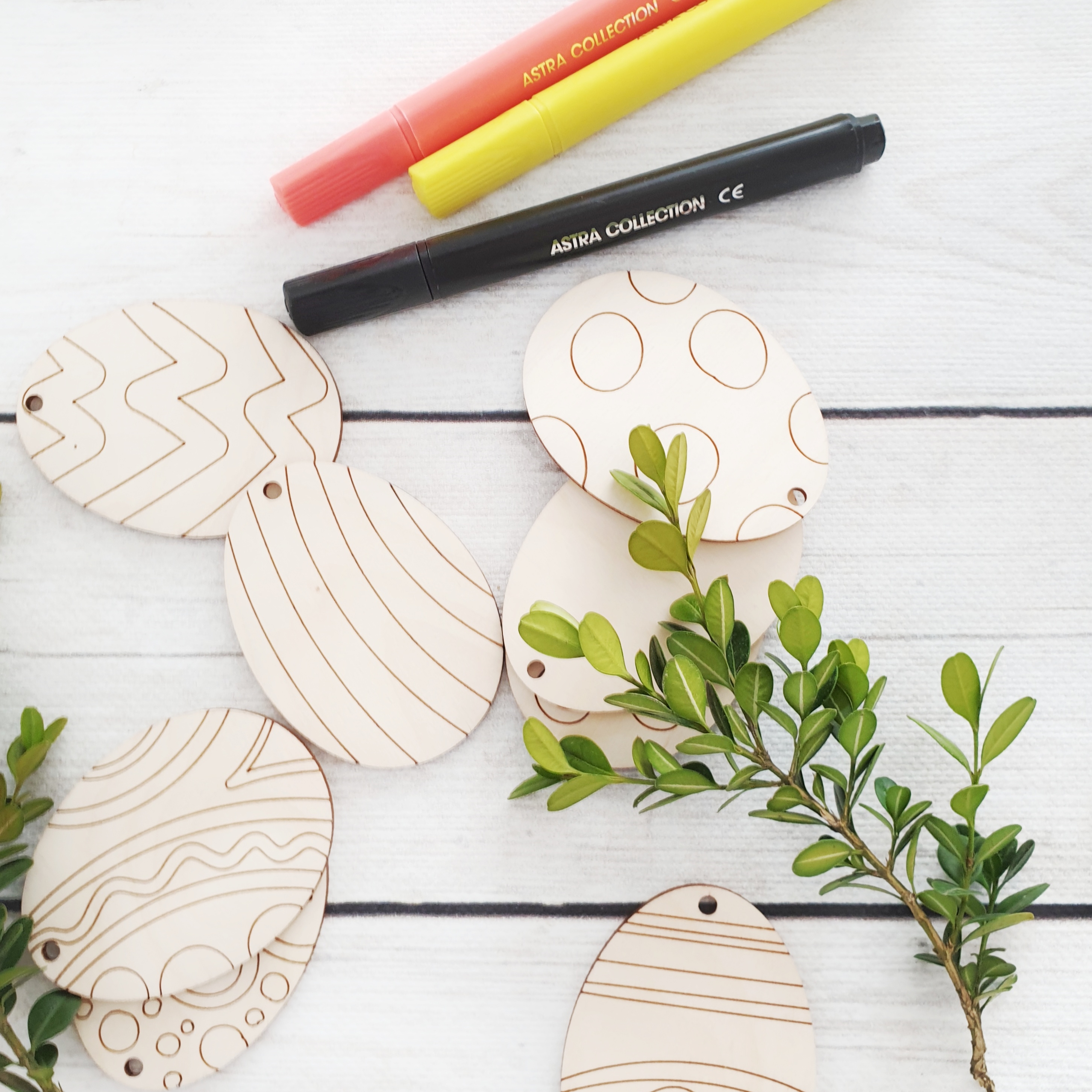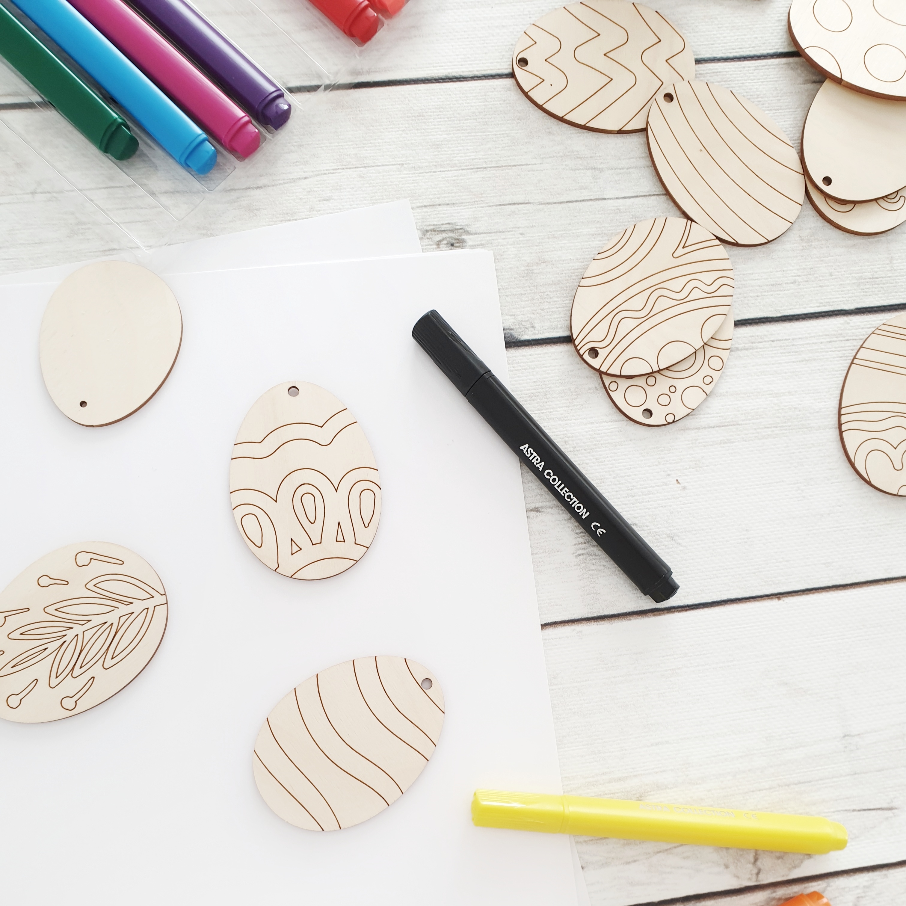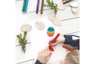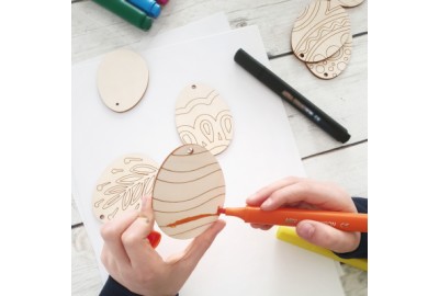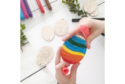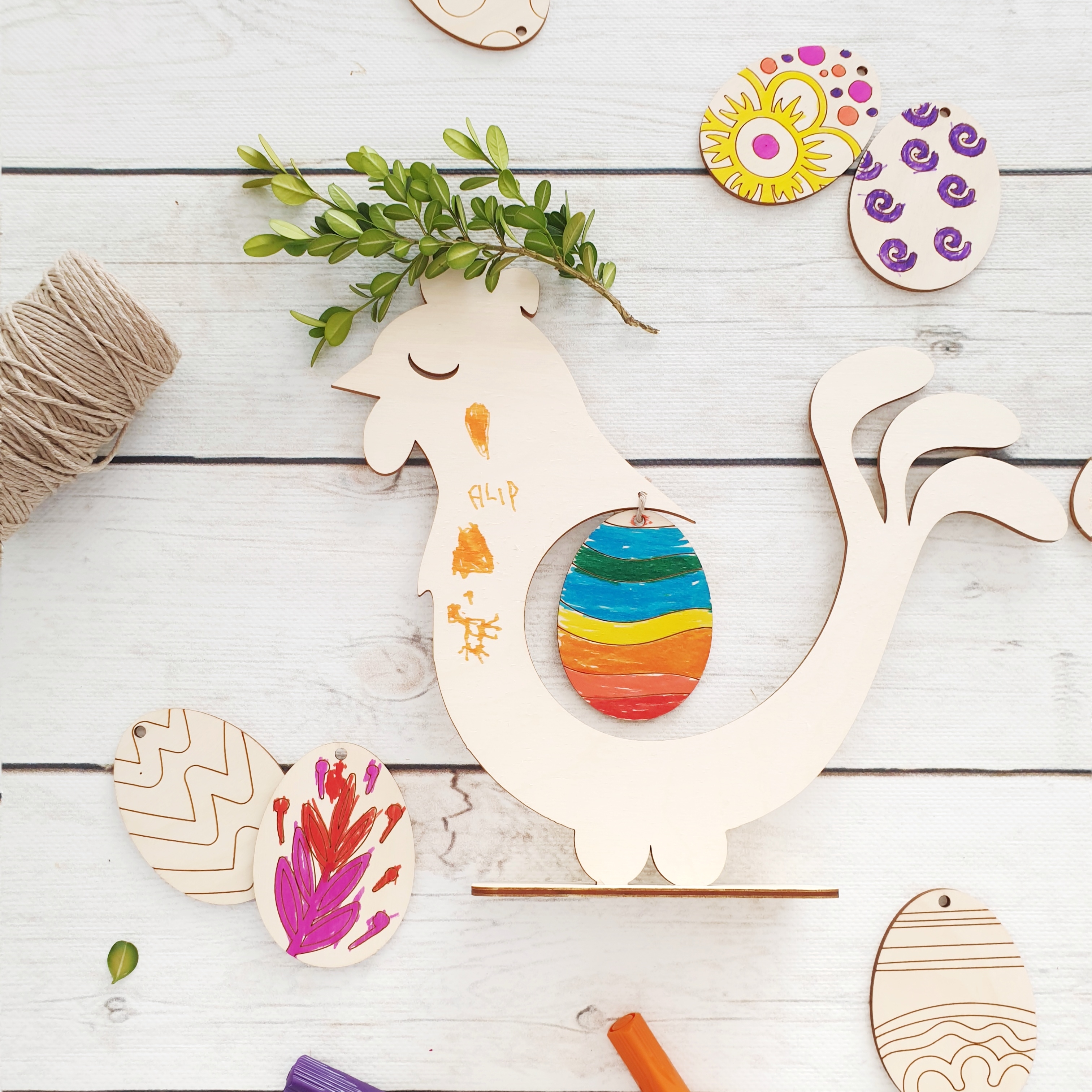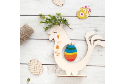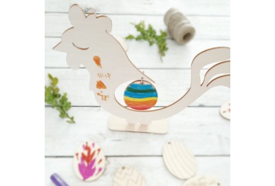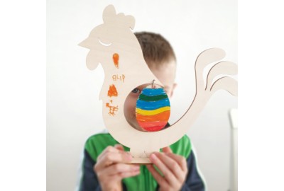 Niepowtarzalna drewniana ozdoba wielkanocna. Dodatkowo może też służyć do zabaw z dziećmi i wspólnego ozdabiania.