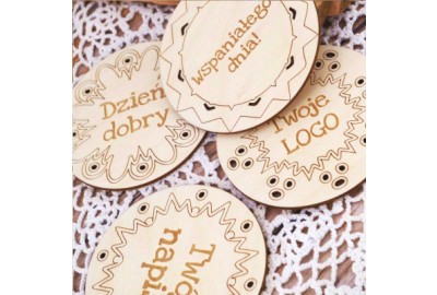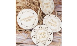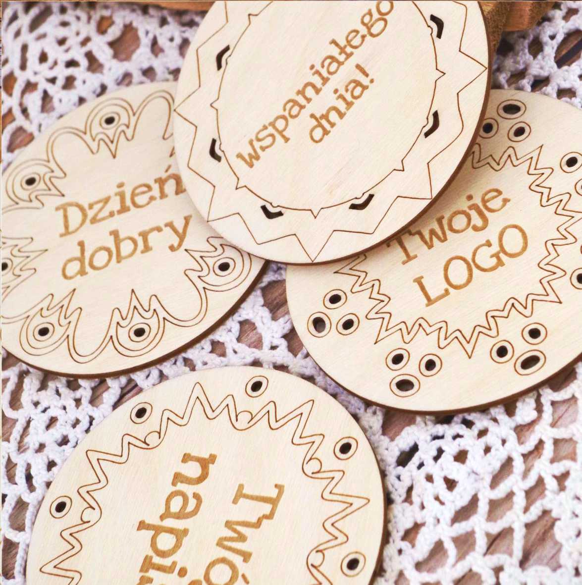 Drewniane podkładki pod kubki z logo lub napisem - zestaw 10 sztuk.