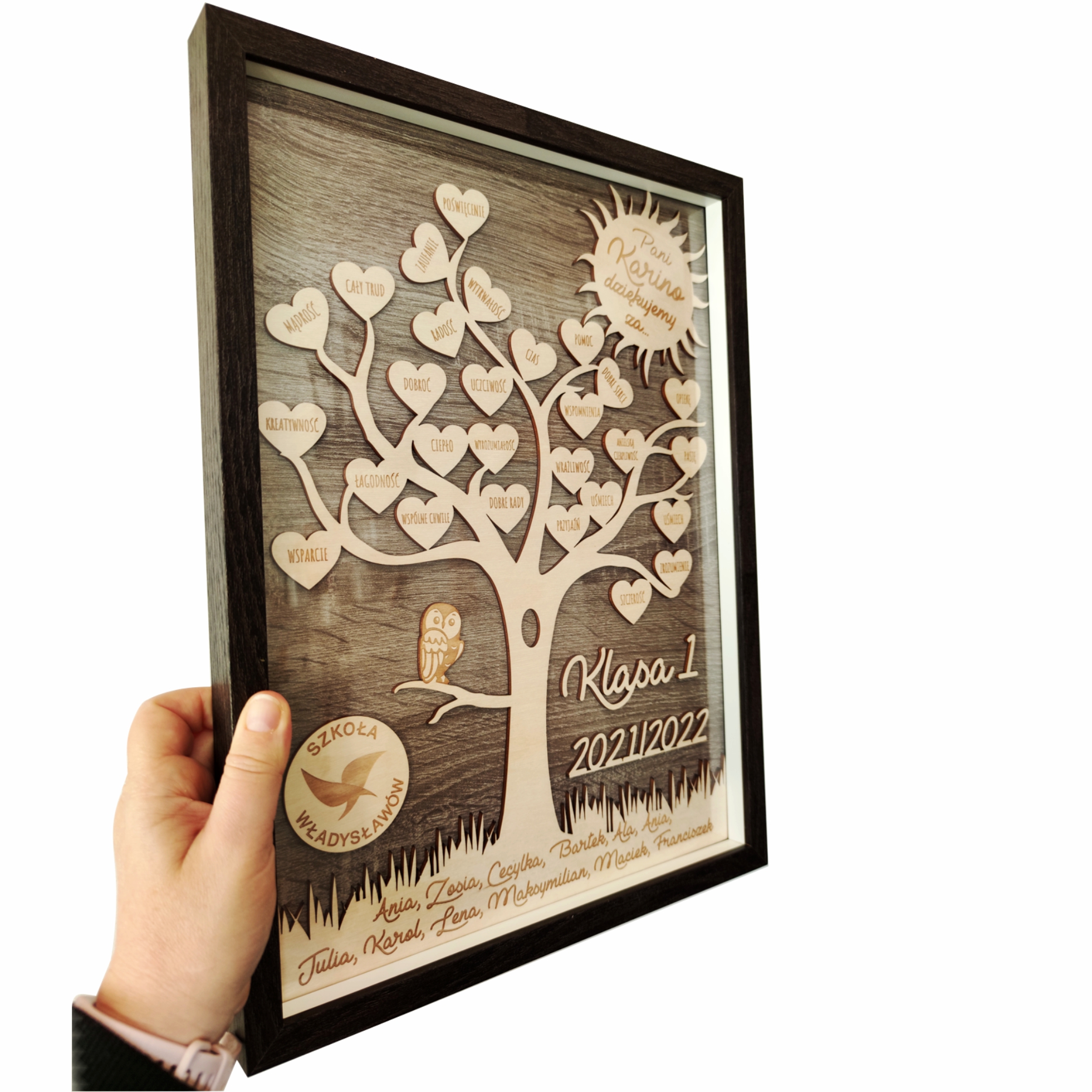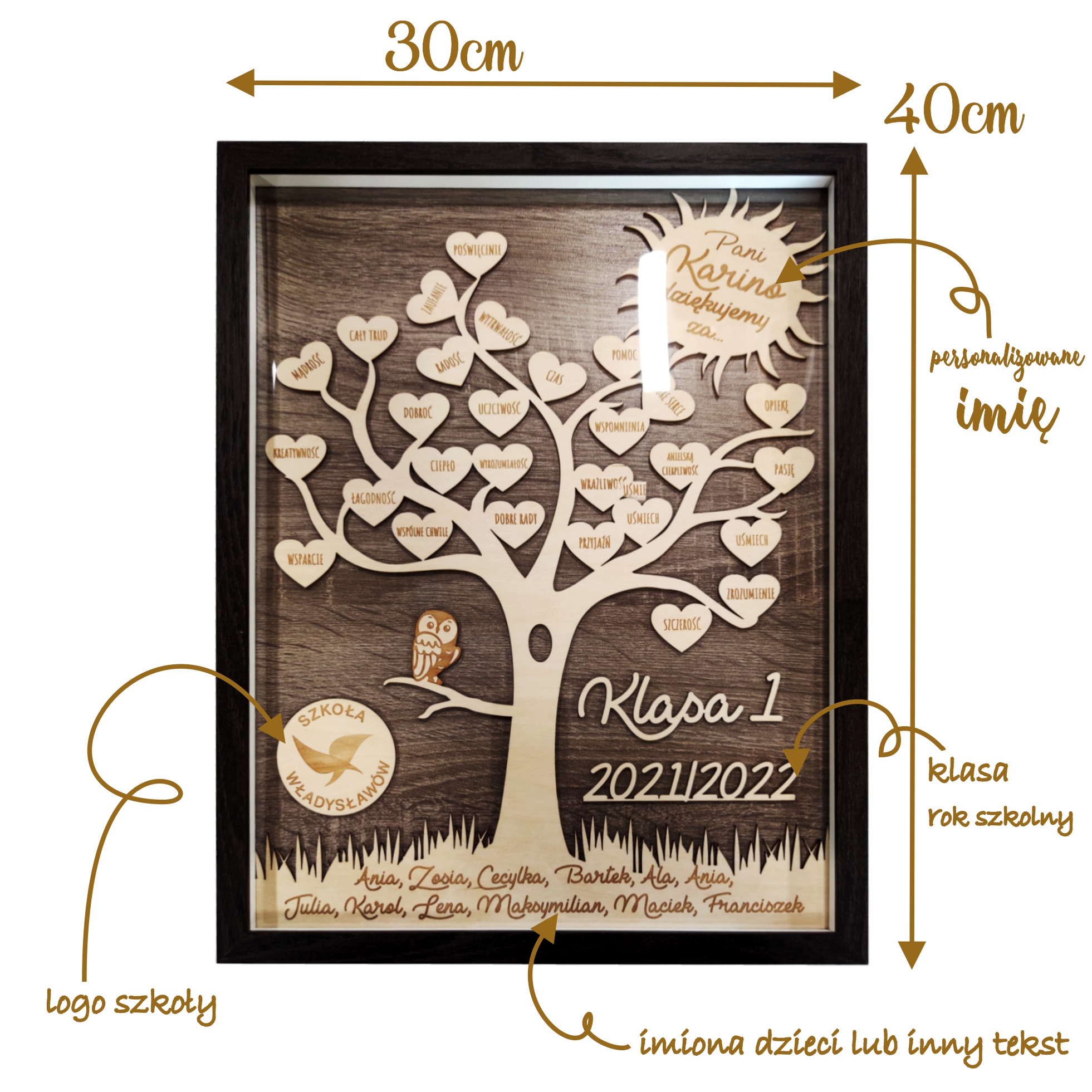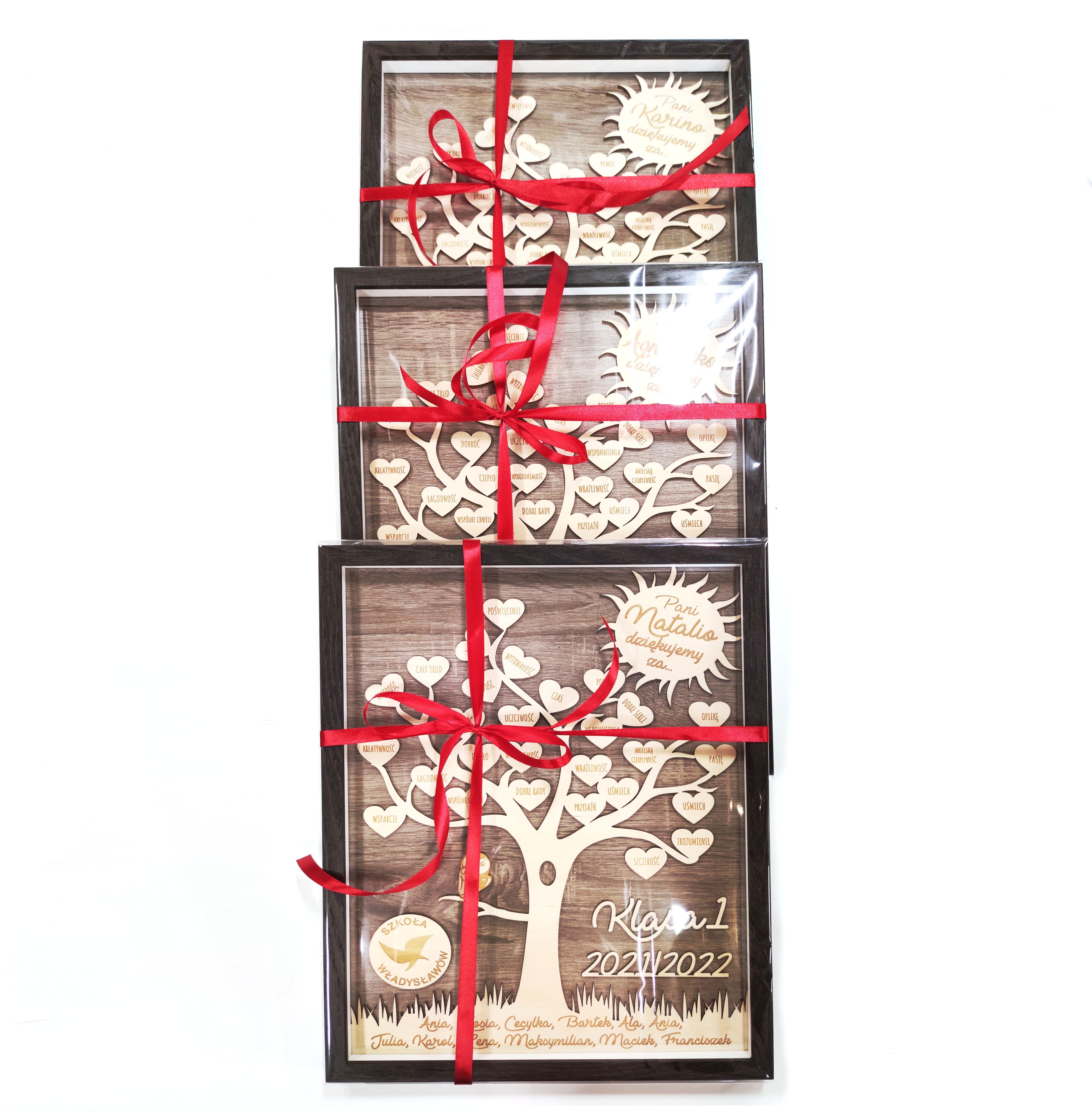Drzewko z serduszkami - treści serc można spersonalizować.