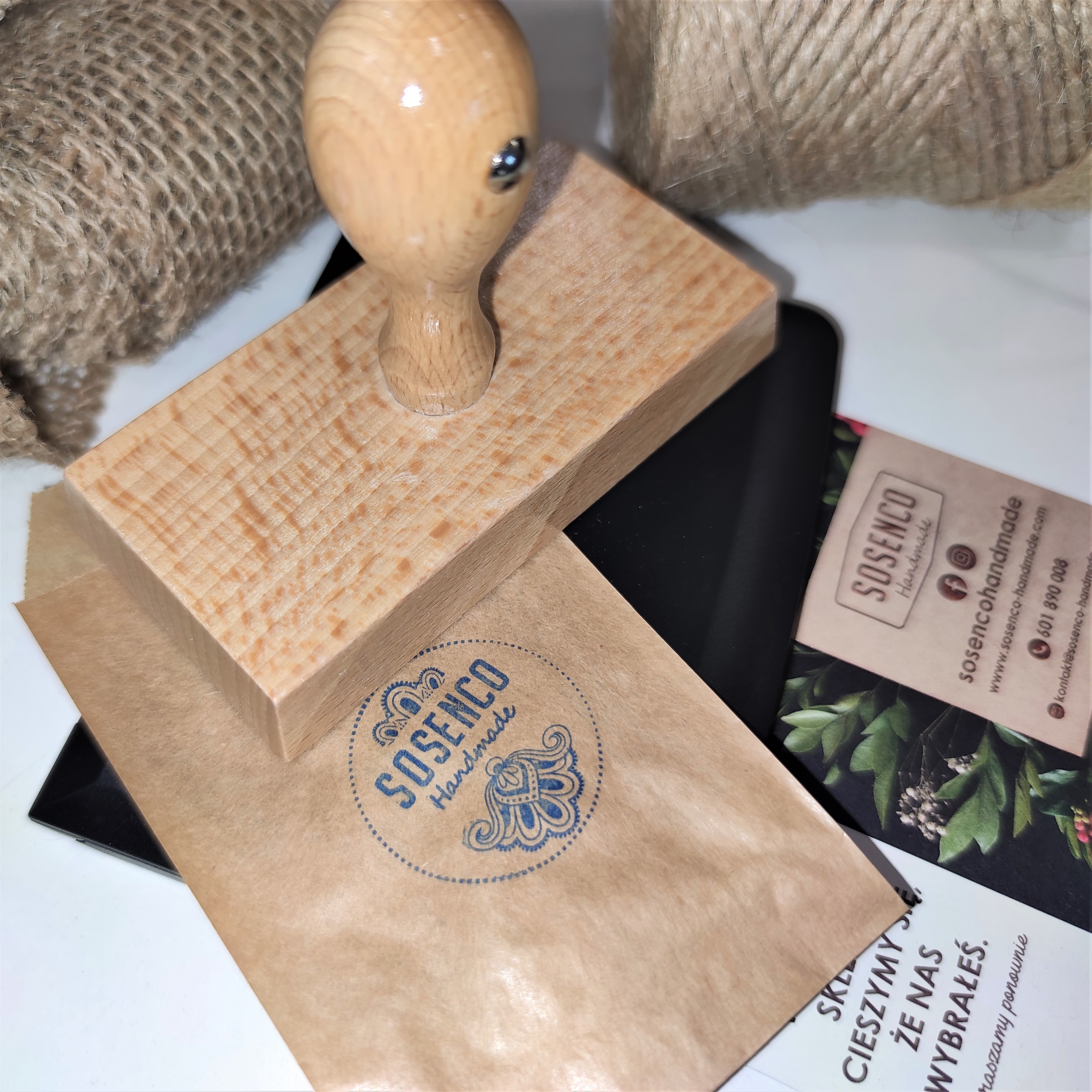 W odpowiedzi na Państwa zapytania, wystawiamy do sprzedaży personalizowane, drewniane pieczątki, które można z powodzeniem wykorzystać do oznaczania swoim logo dodatkowych materiałów, które wysyłacie Państwo ze swoim rękodziełem.