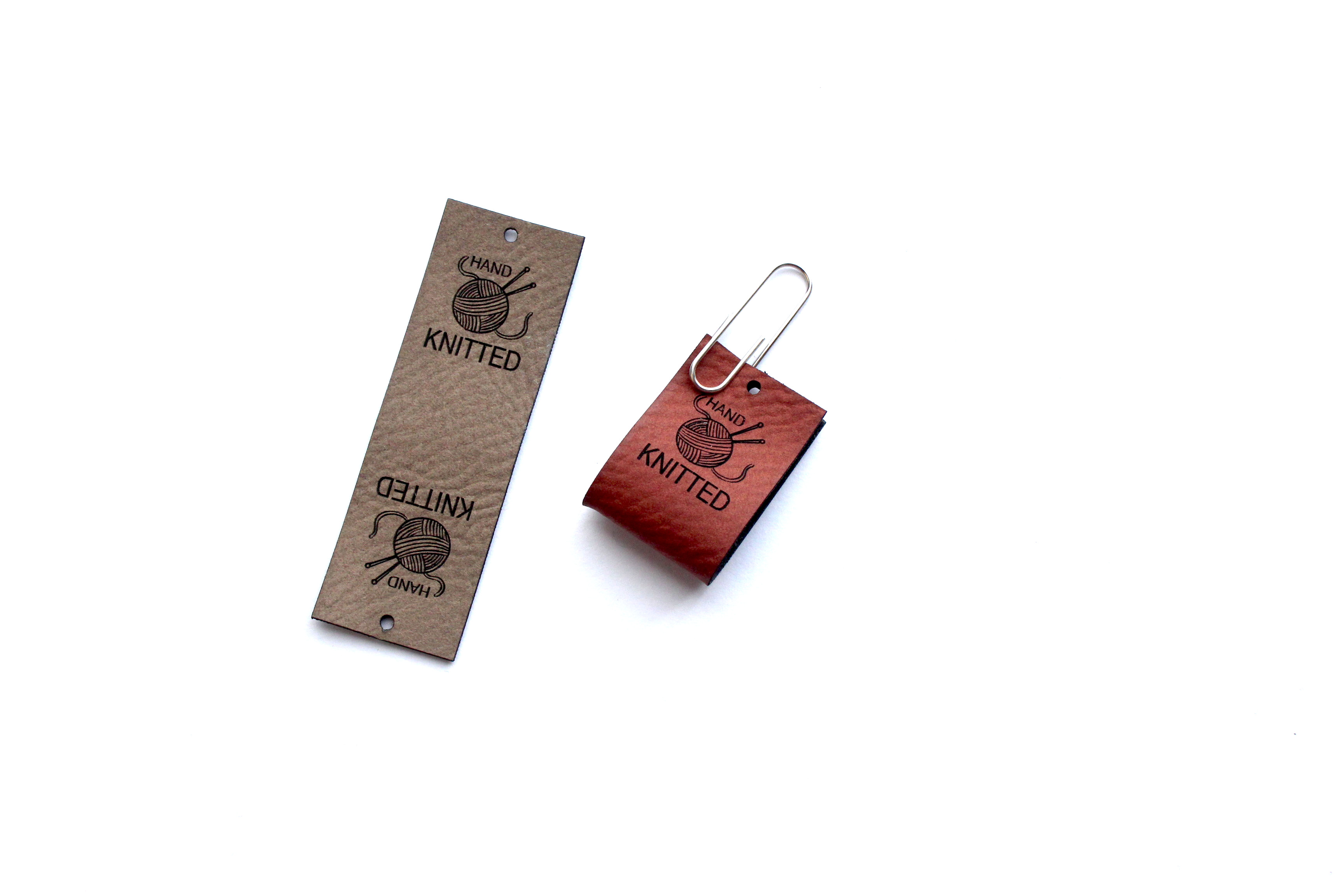 Metki składane z ekoskóry "hand knitted" - 10 sztuk