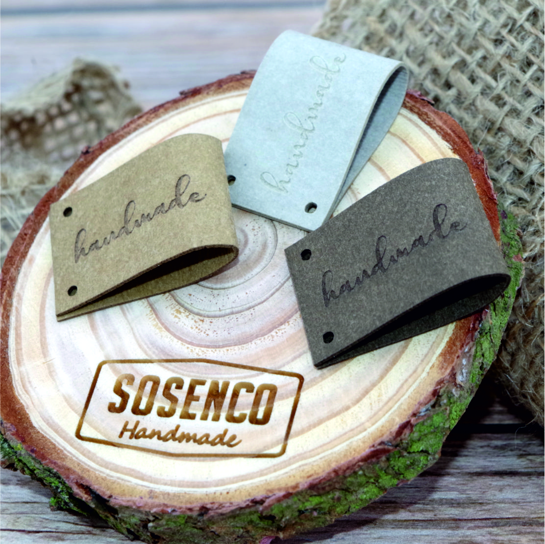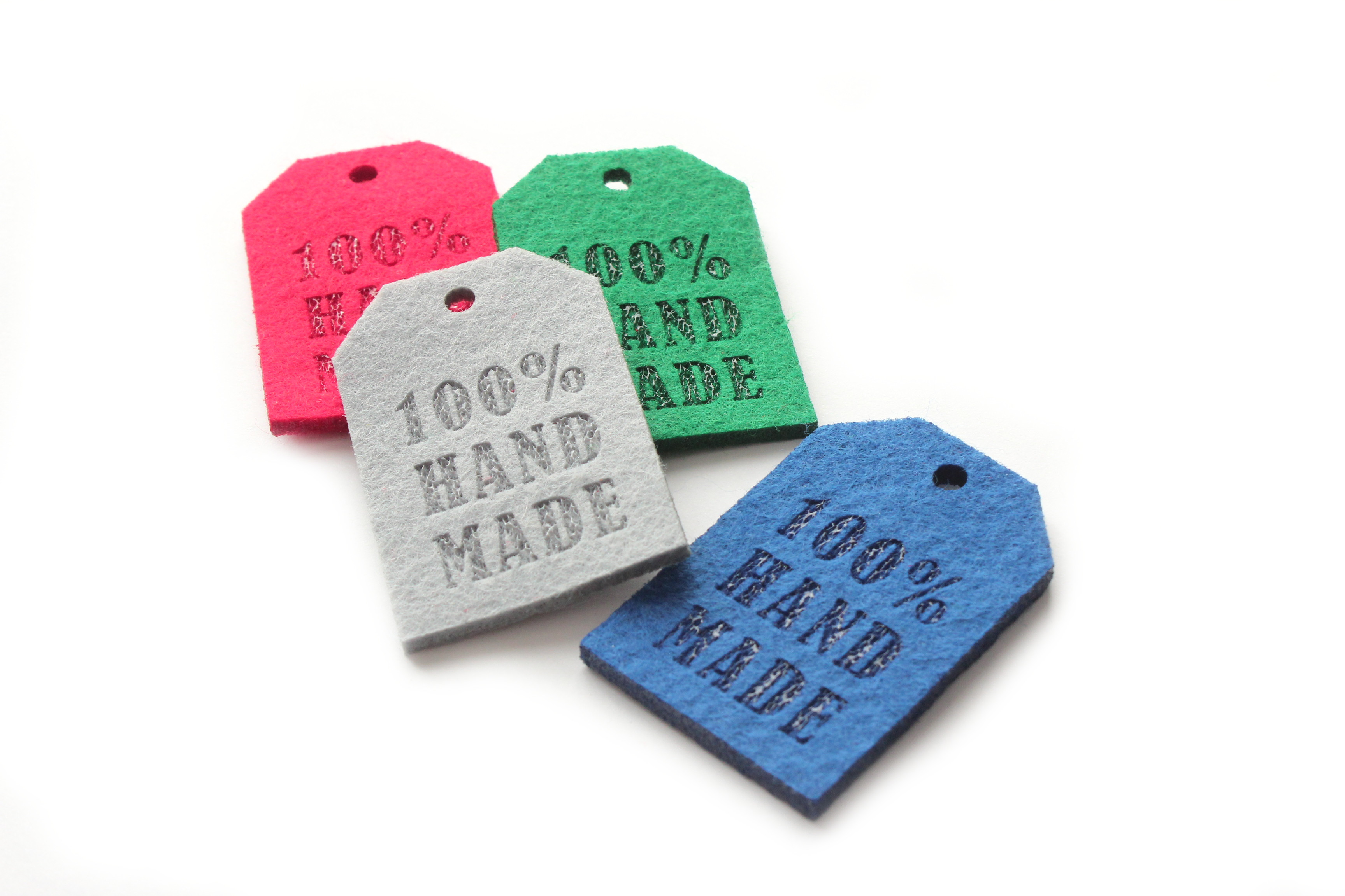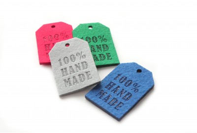 Metki etykiety z filcu "100% HAND MADE" - 10 sztuk