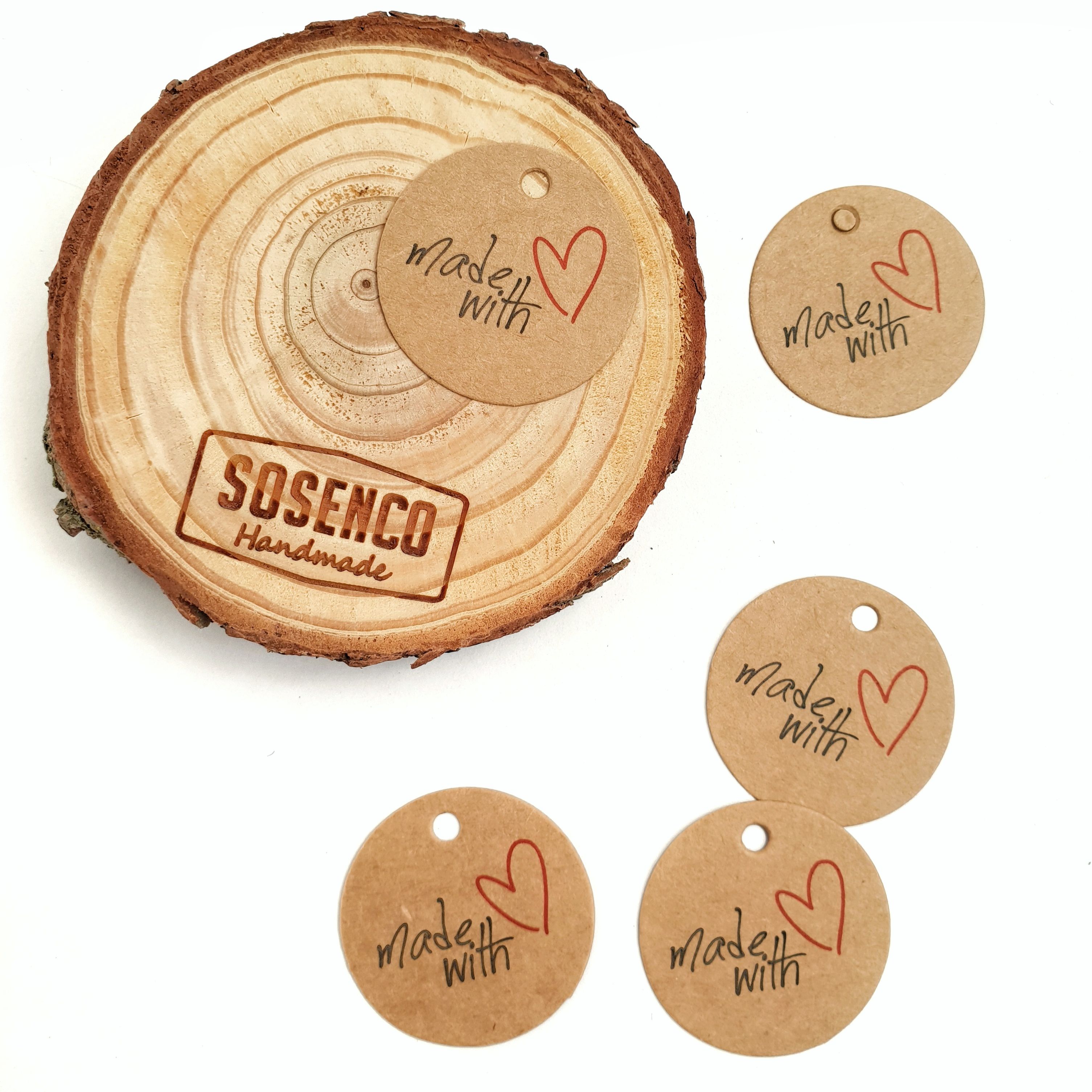 Zawieszka kartonowa 3 cm Made with love