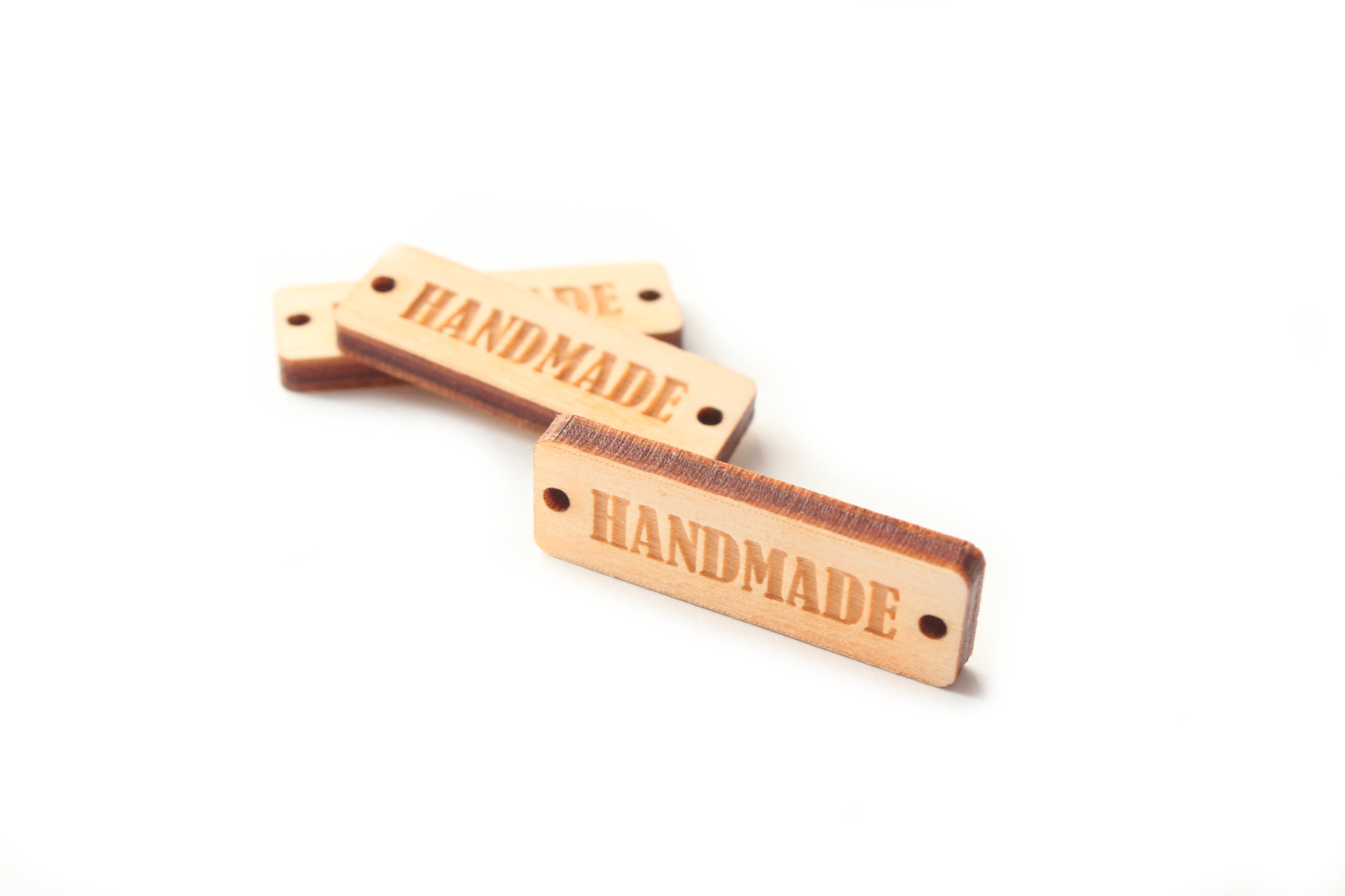 Metki ze sklejki "HANDMADE" - 10 sztuk