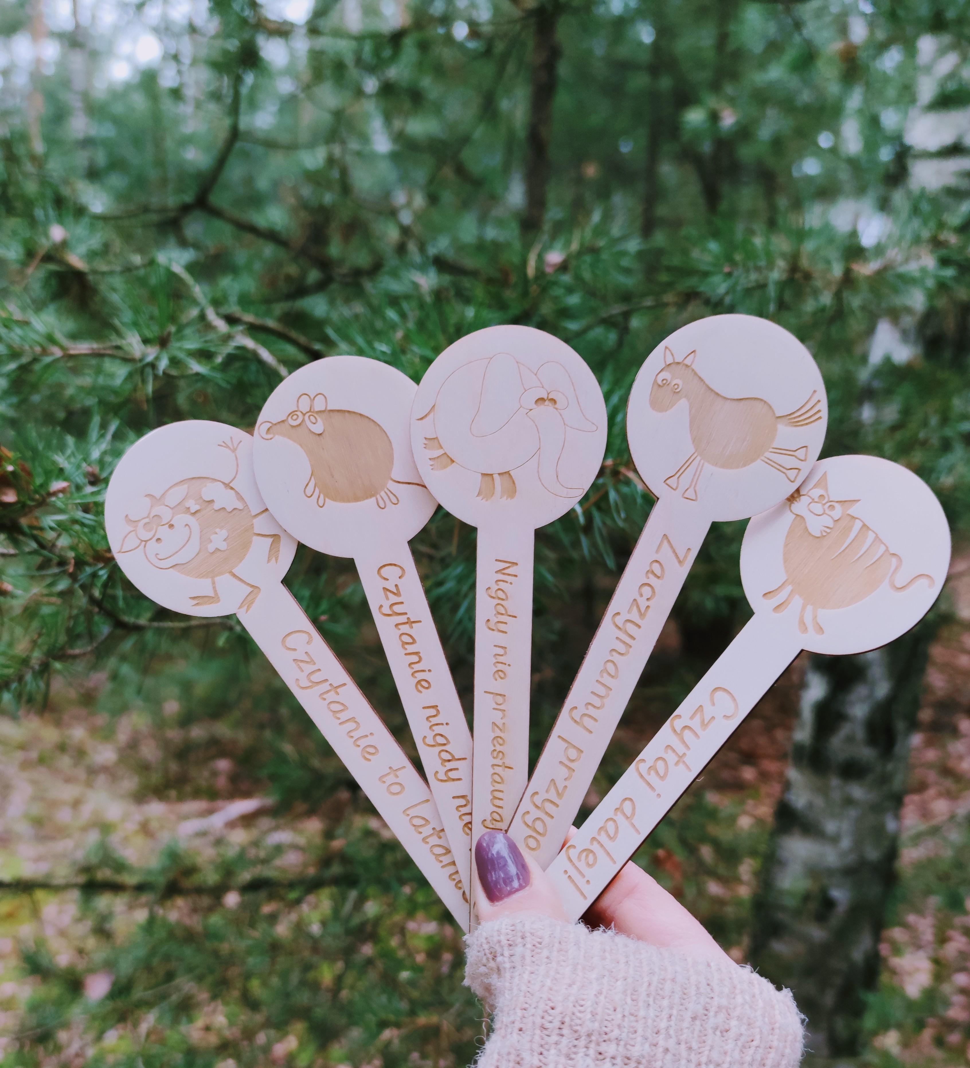Zestaw 5 zakładek do książek z motywem zwierząt.