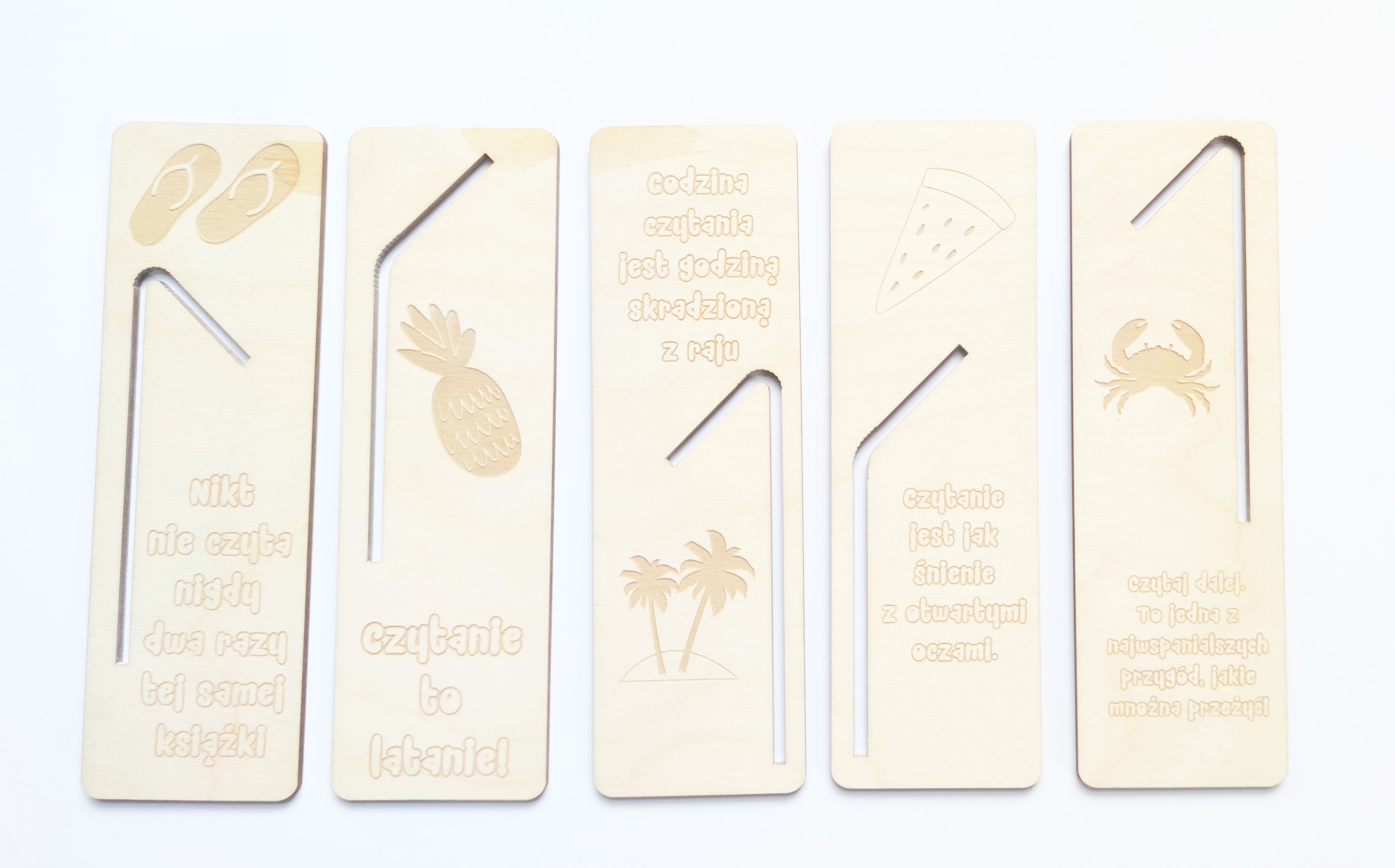 Zestaw 5 zakładek do książek z motywem wakacyjnym.
