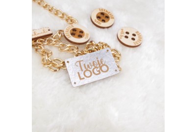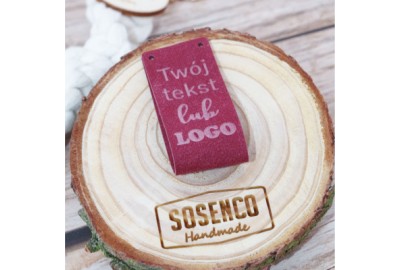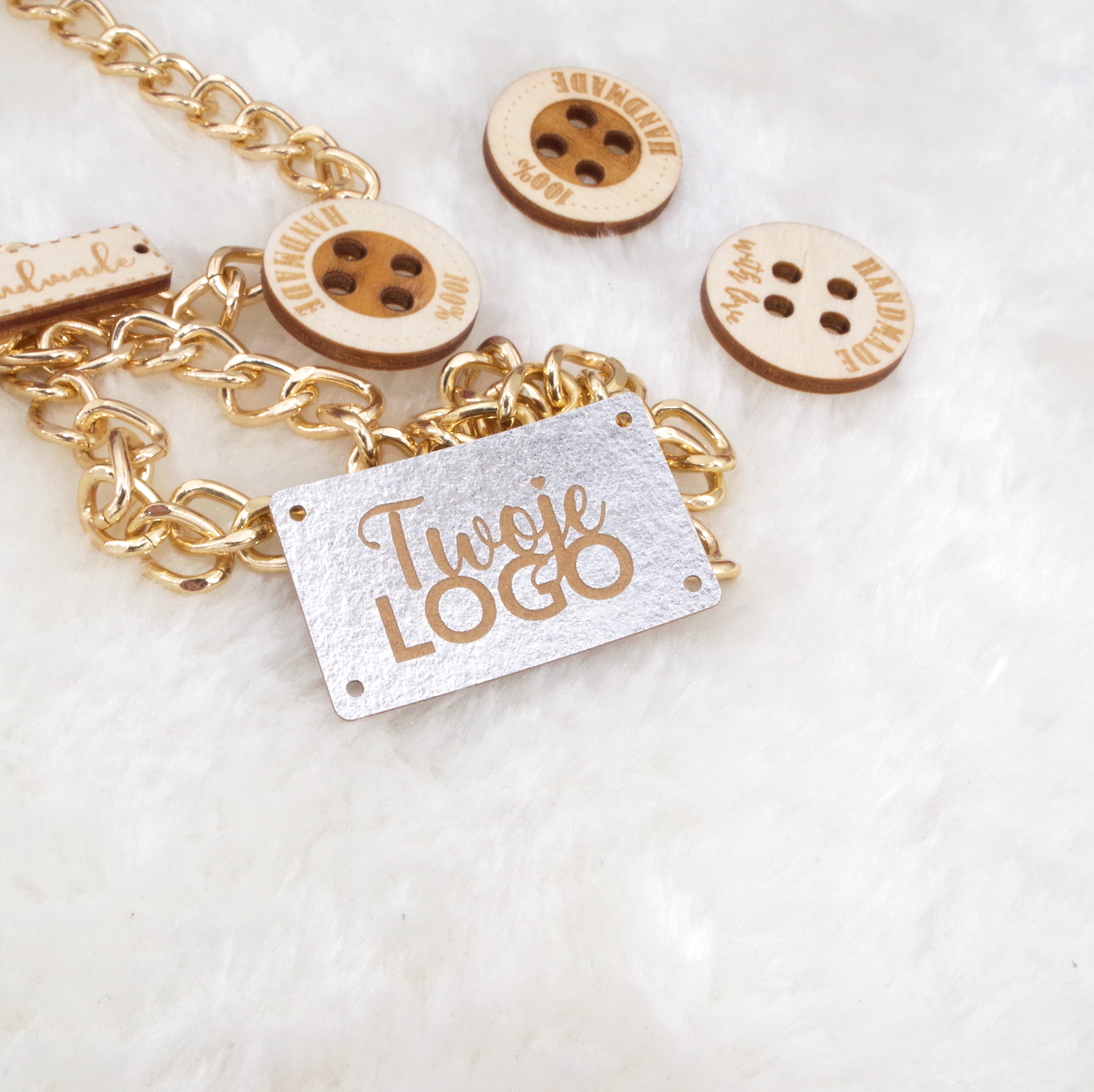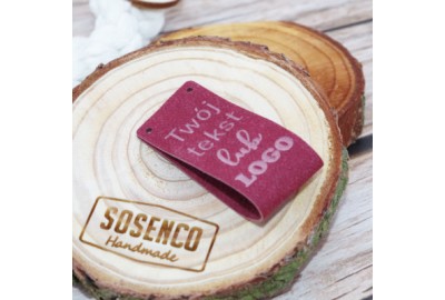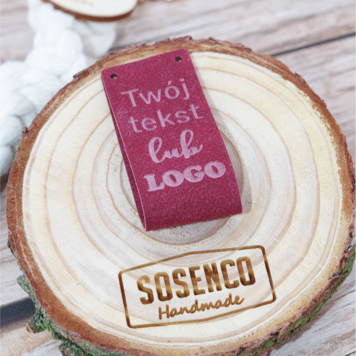 Personalizowana prostokątna metka z washpapy z logo lub napisem.