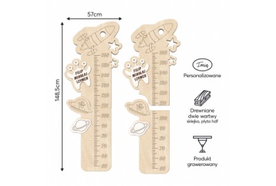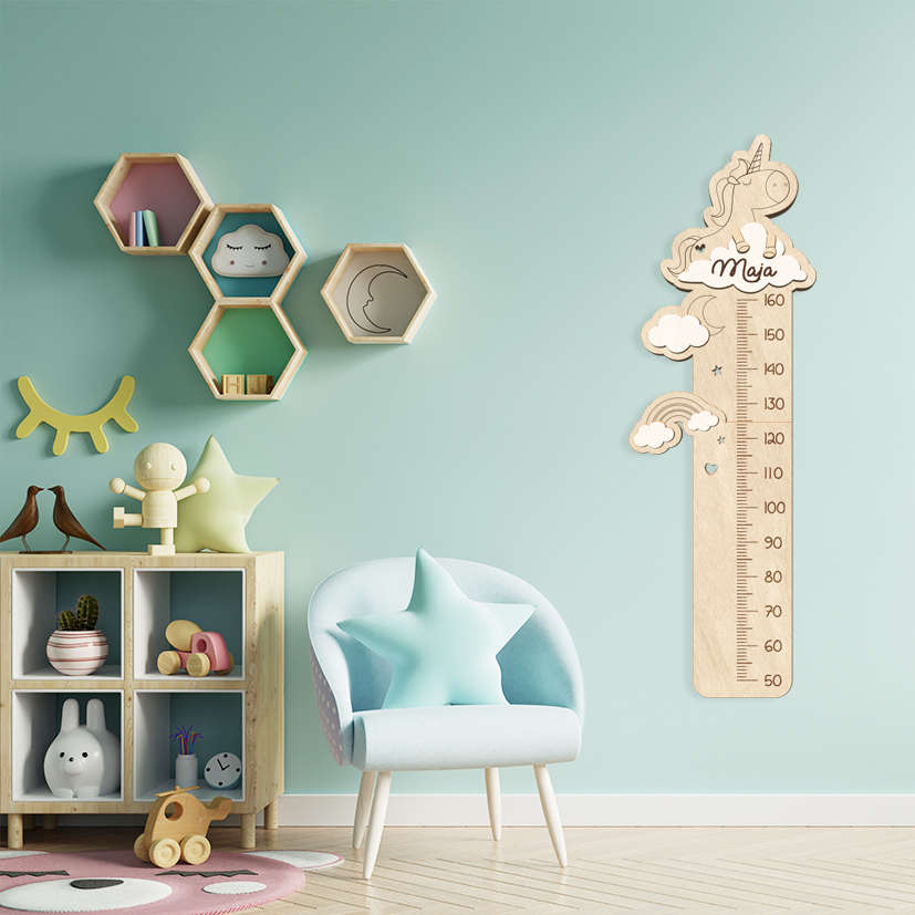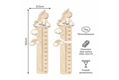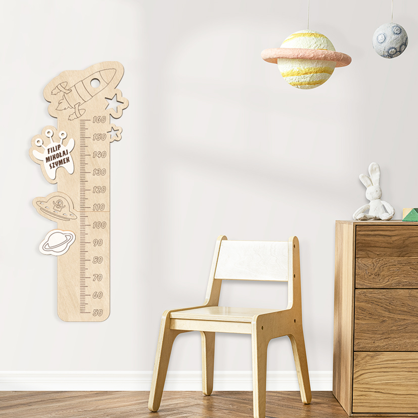 Piękna, drewniana miarka wzrostu dla dziecka z imieniem