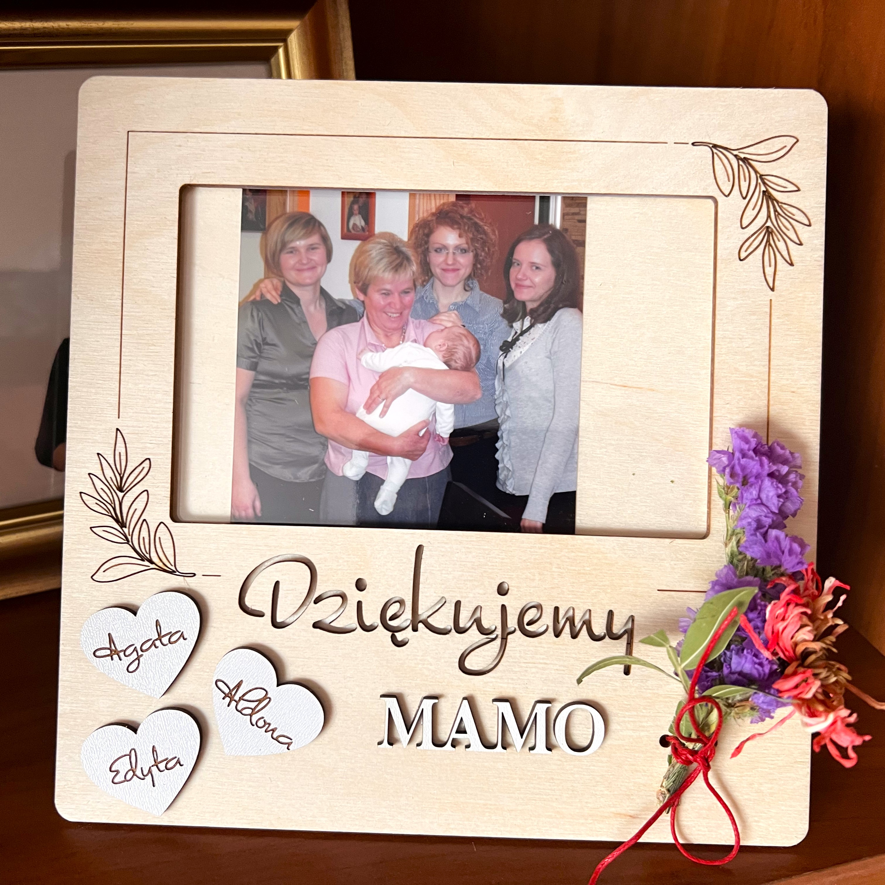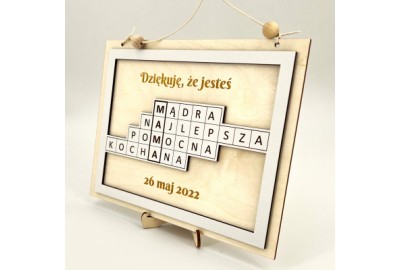 Drewniana ramka z krzyżówką na dzień mamy - personalizowana
