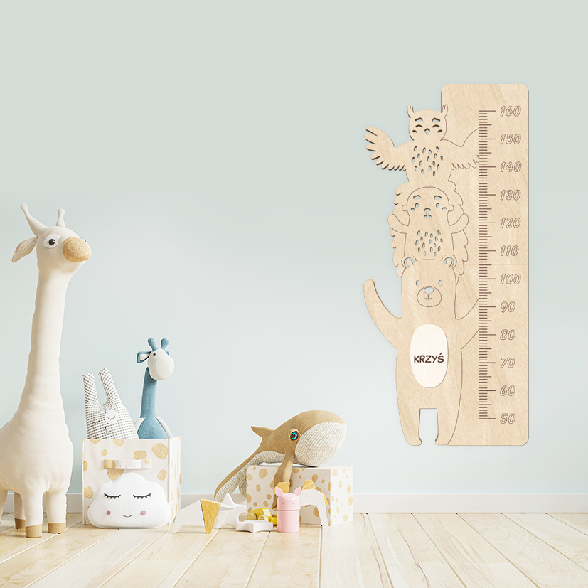 Piękna, drewniana miarka wzrostu dla dziecka z imieniem