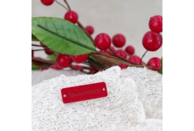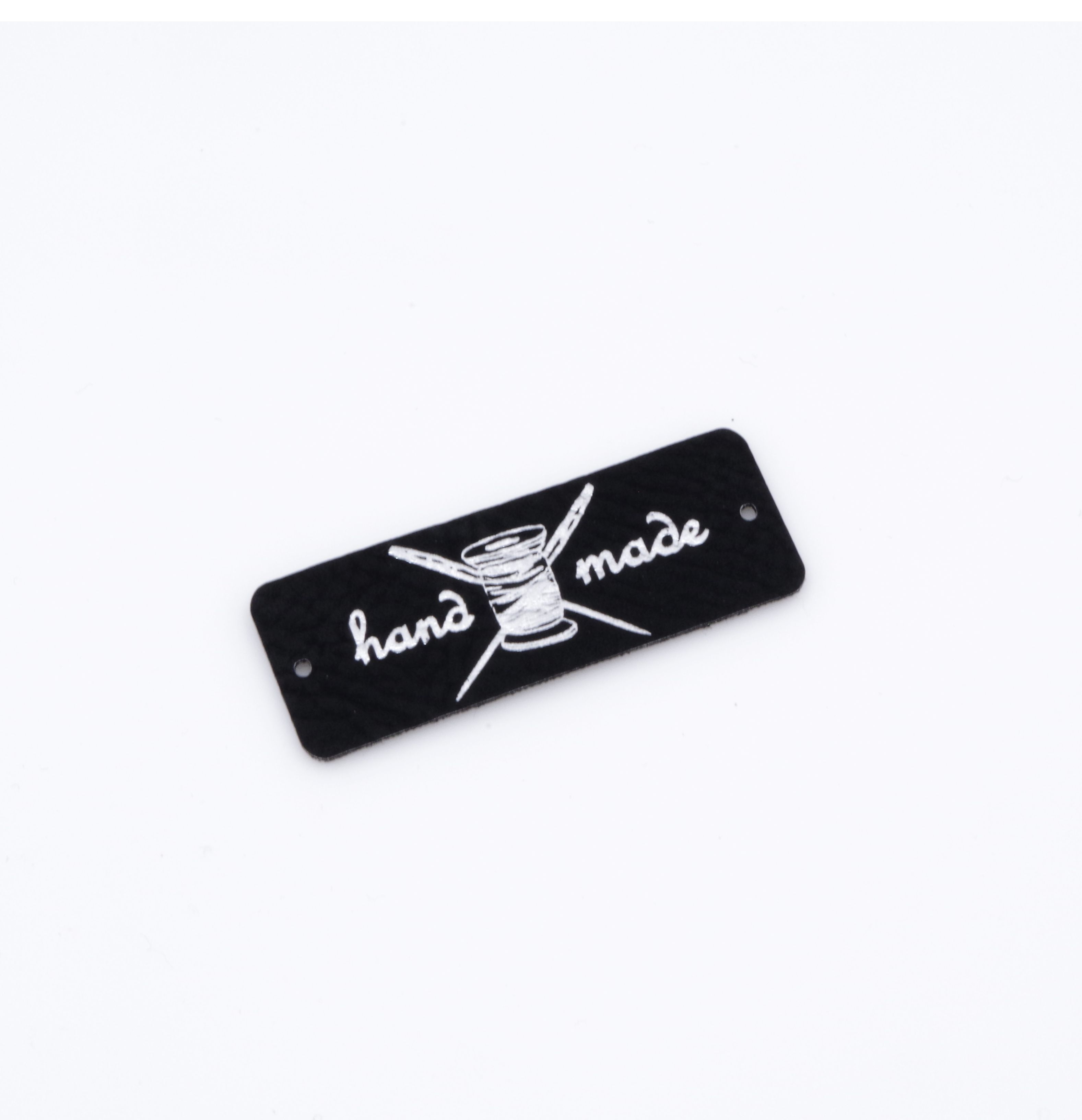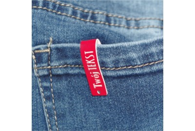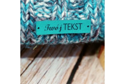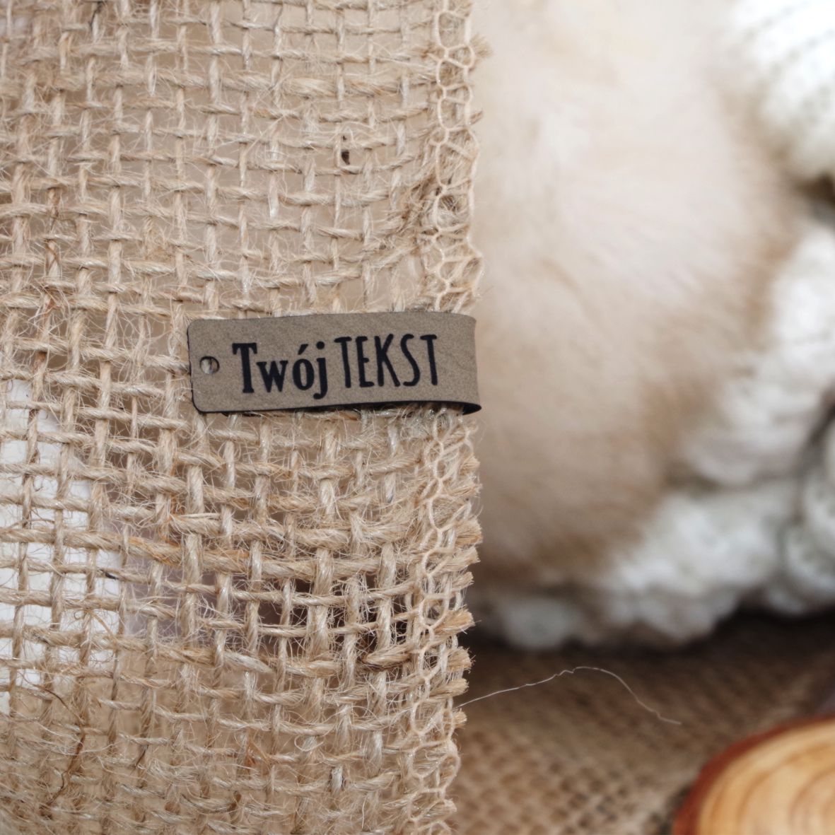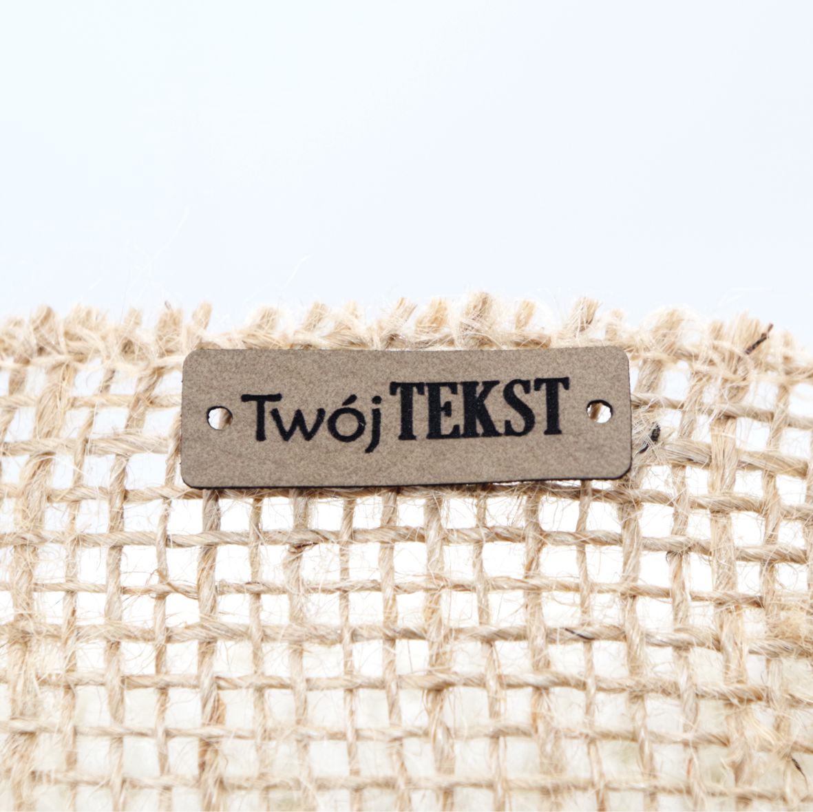 Personalizowana prostokątna metka z ekoskóry z logo lub napisem.