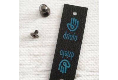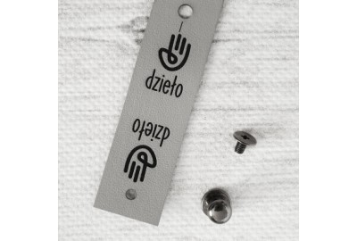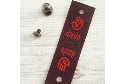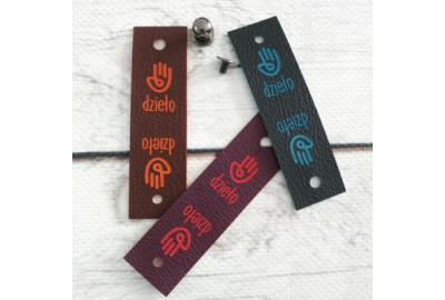 Metka składana "DZIEŁO" z ekoskóry z nitem