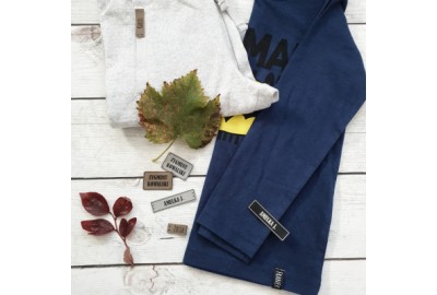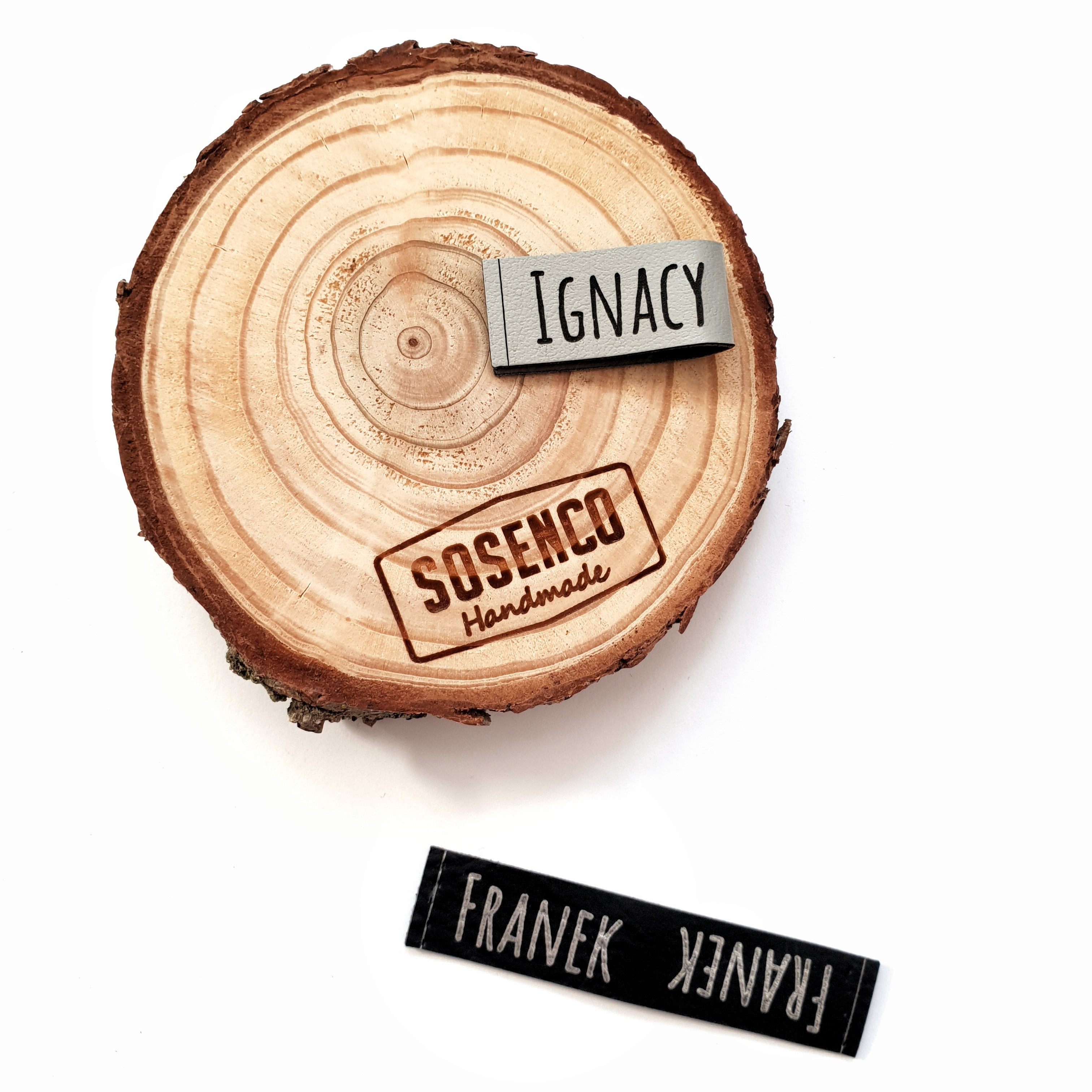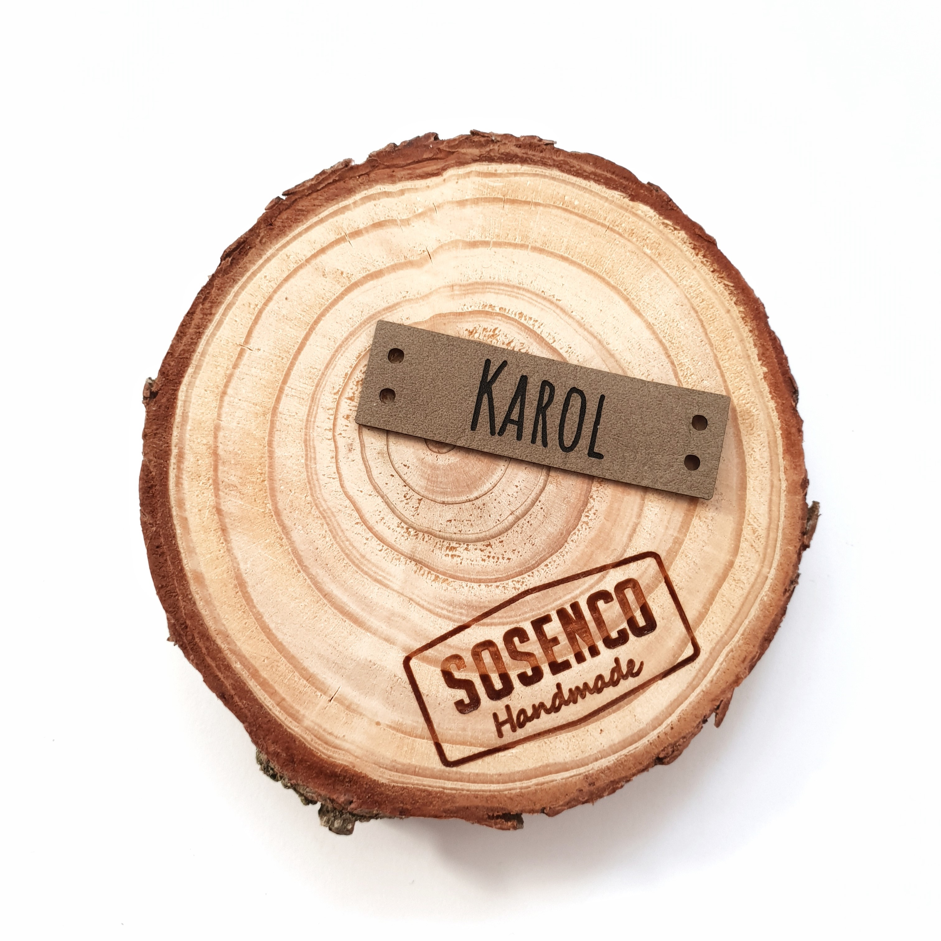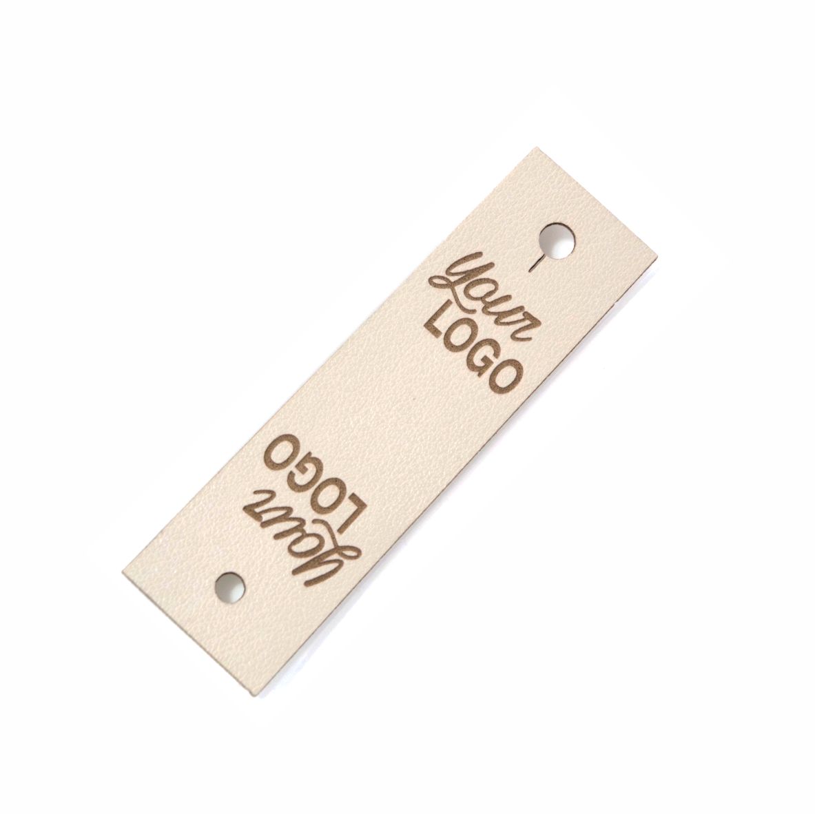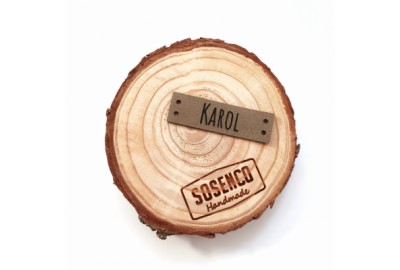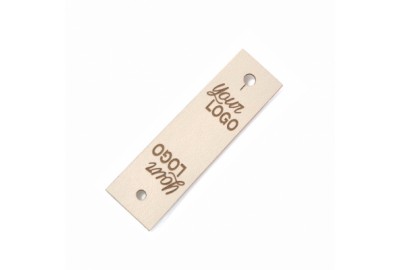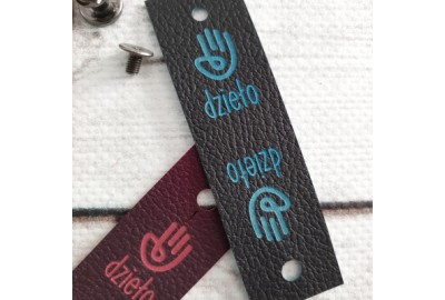 Personalizowana prostokątna metka z ekoskóry z logo lub napisem.