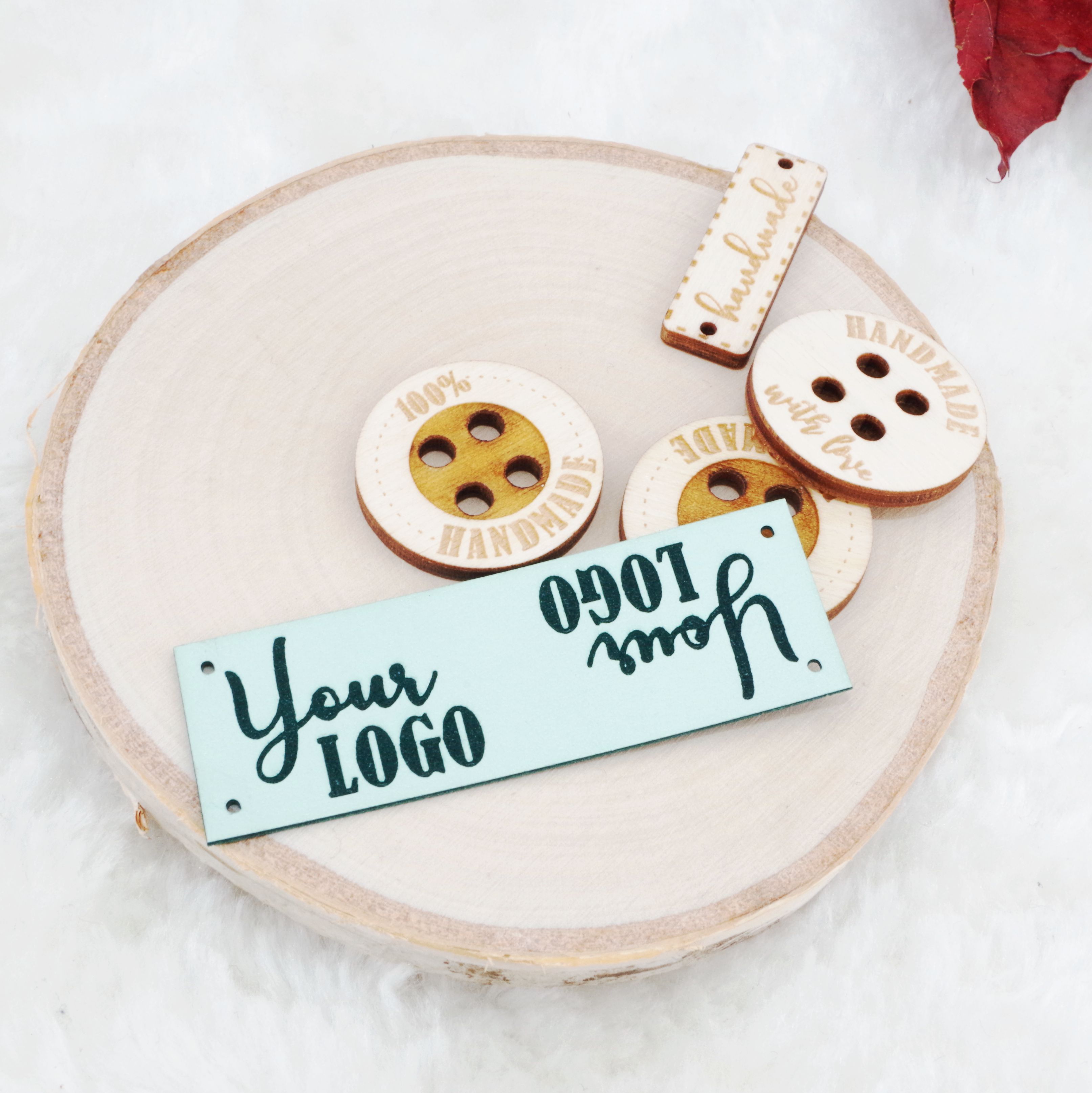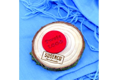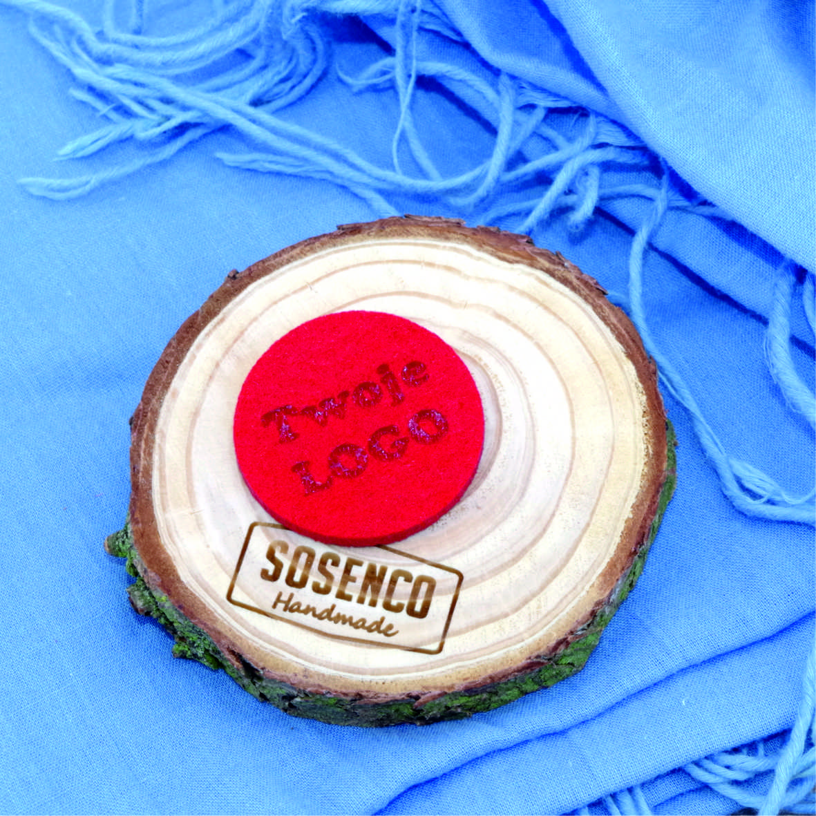 Personalizowana okrągła metka z filcu z logo lub napisem.