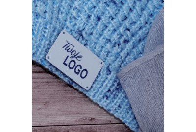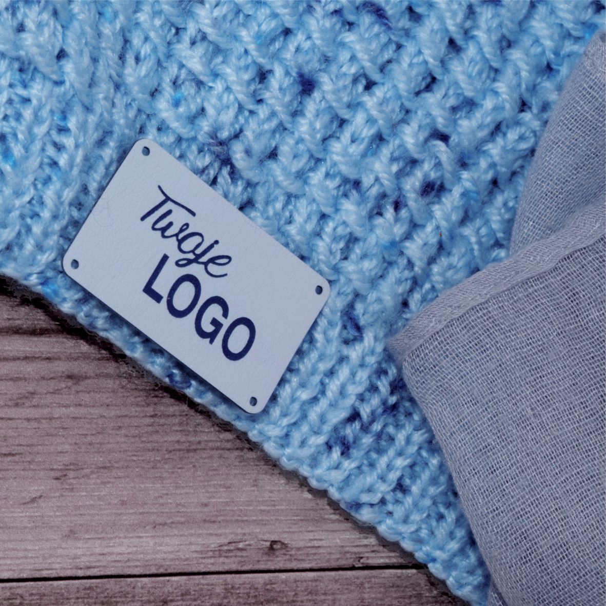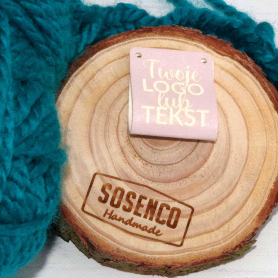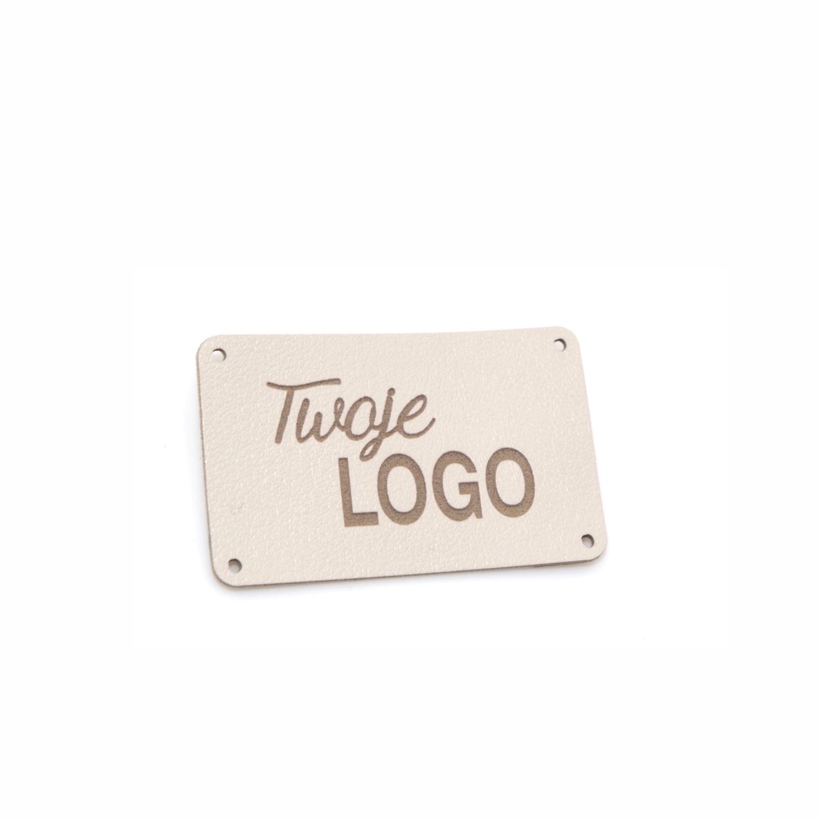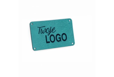 Personalizowana prostokątna metka z ekoskóry z logo lub napisem.