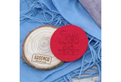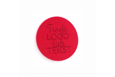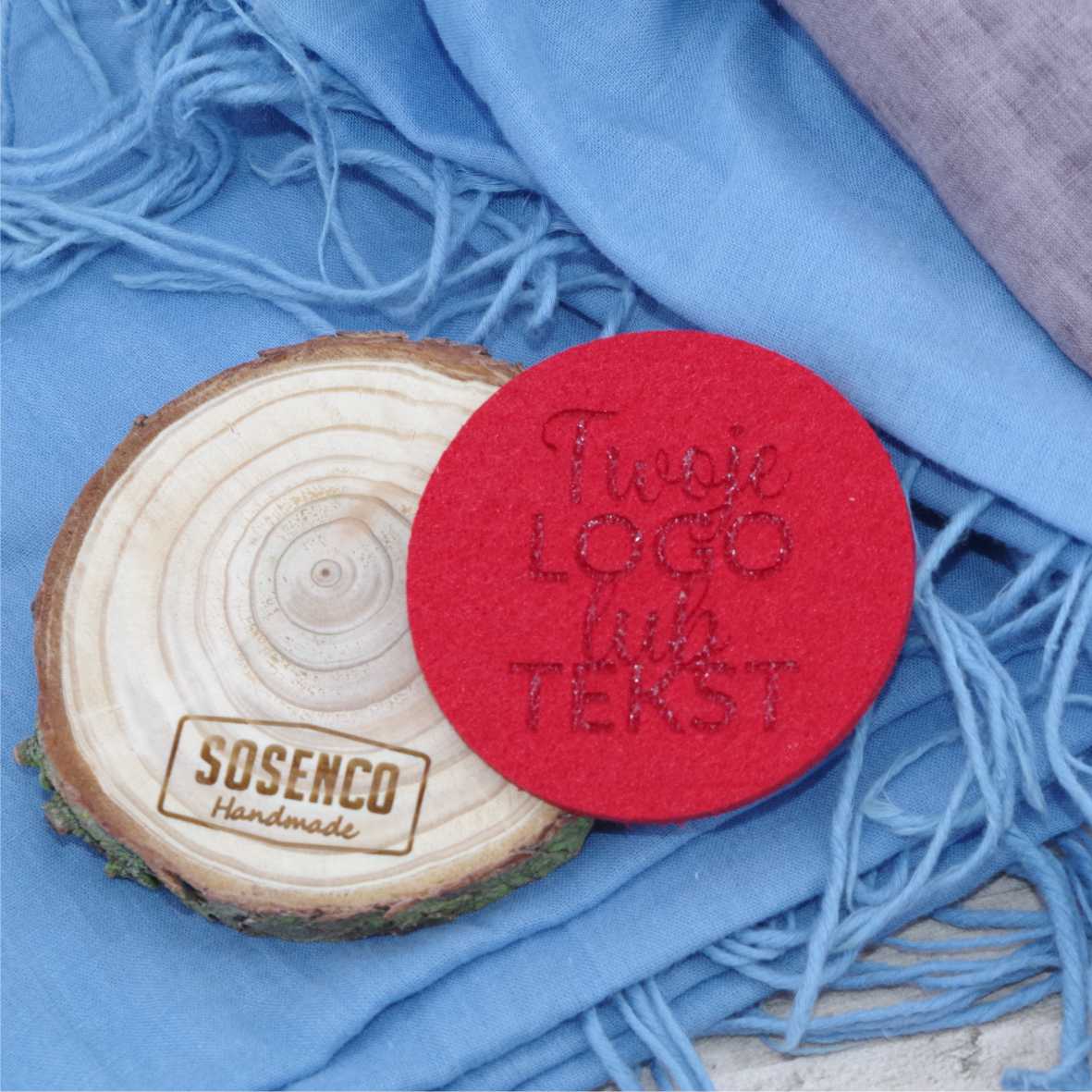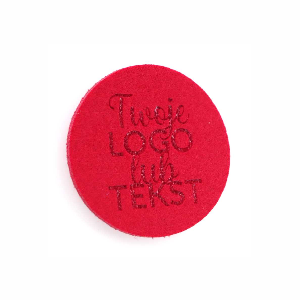 Personalizowana okrągła metka z filcu z logo lub napisem.