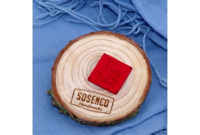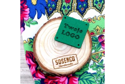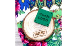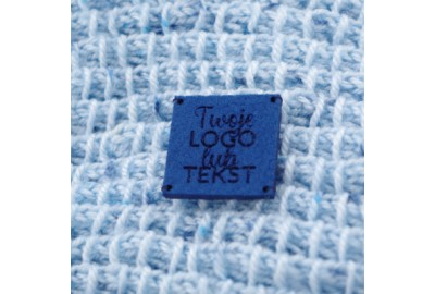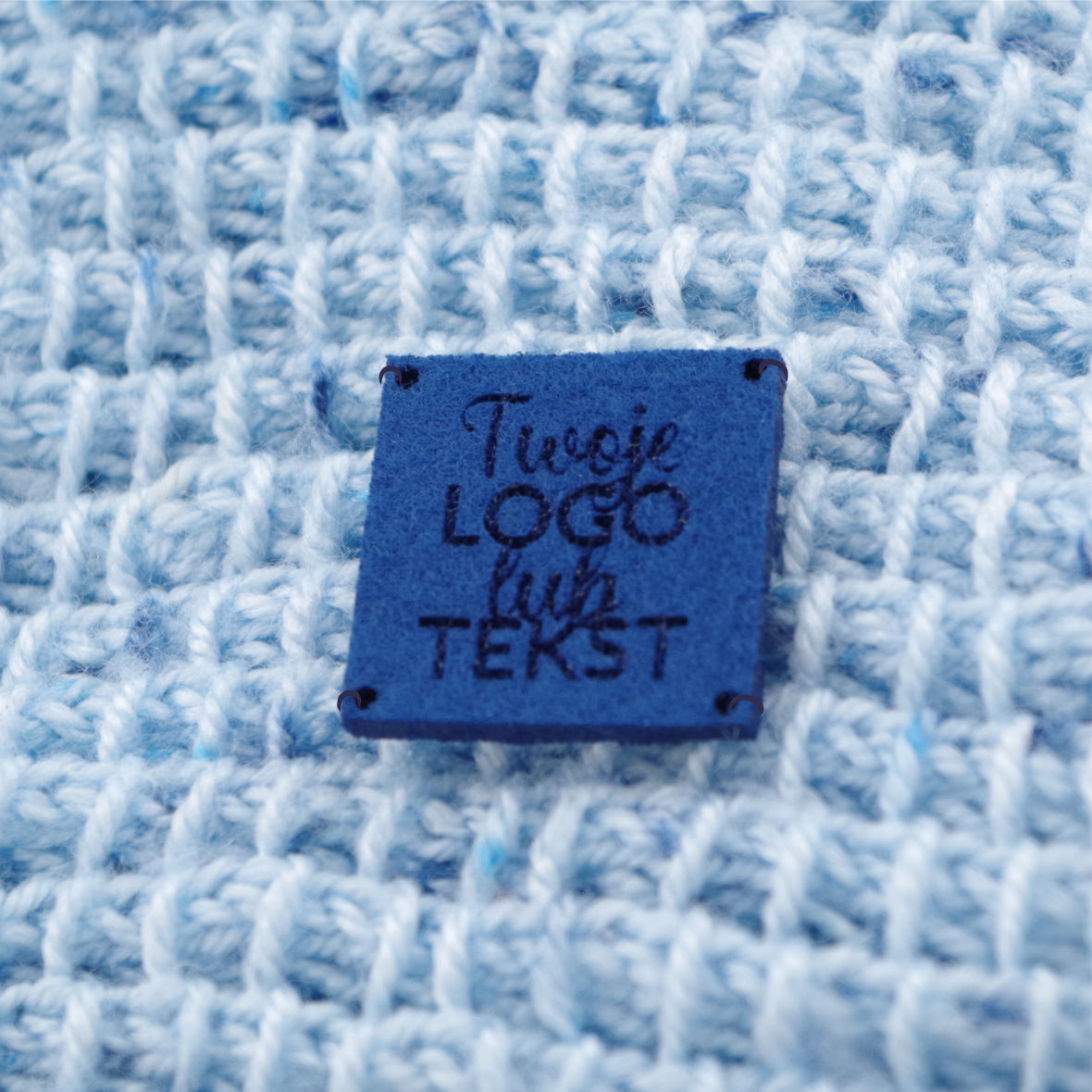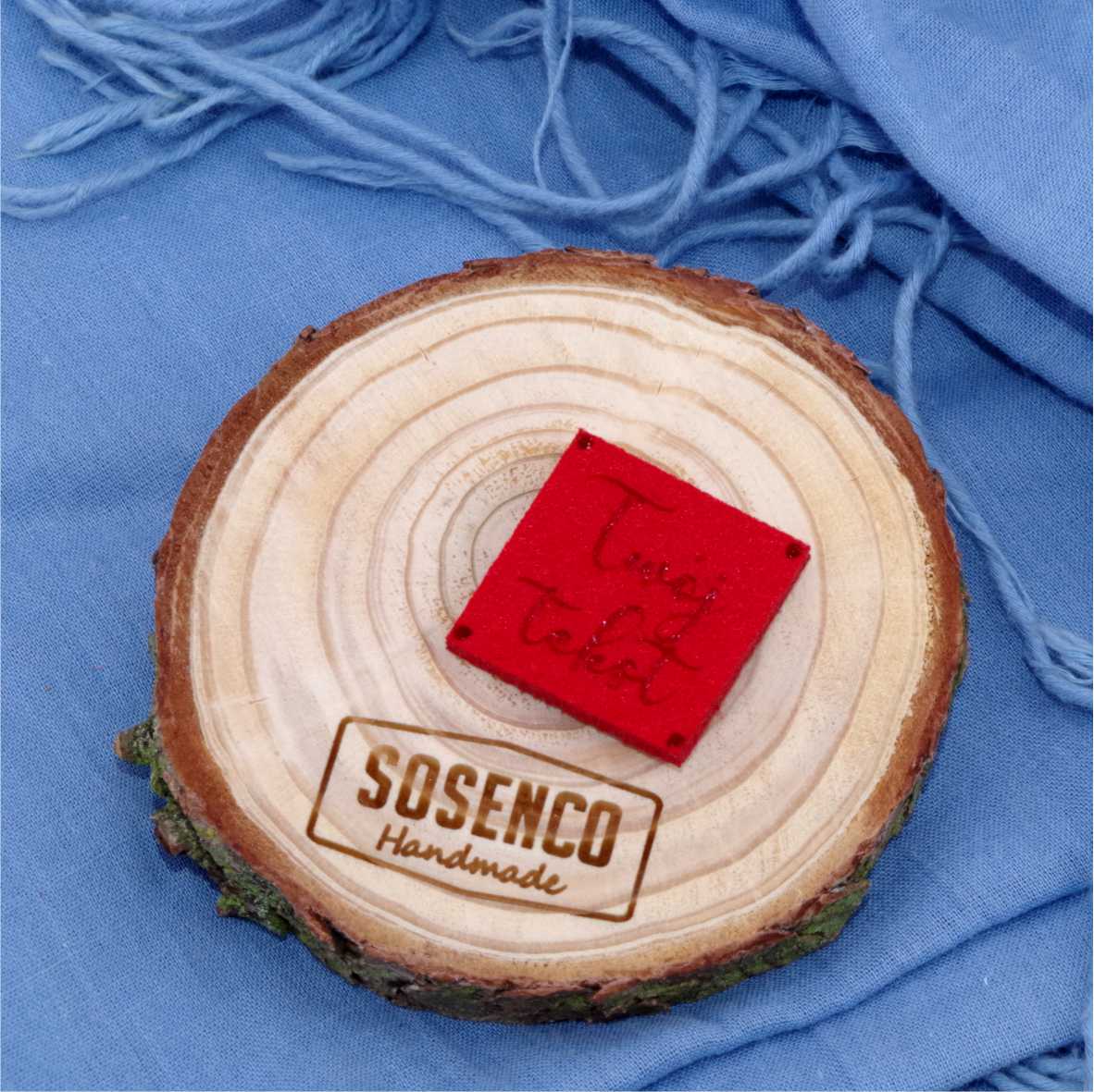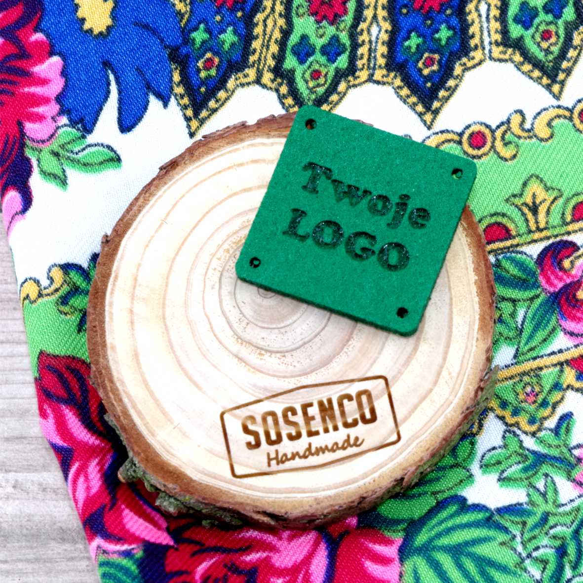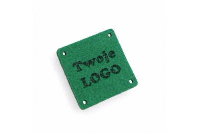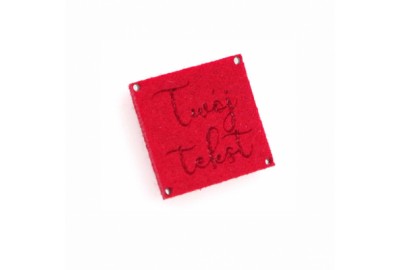 Personalizowana kwadratowa metka z filcu z logo lub napisem.