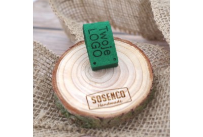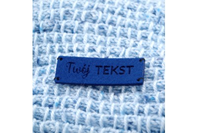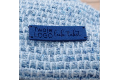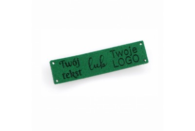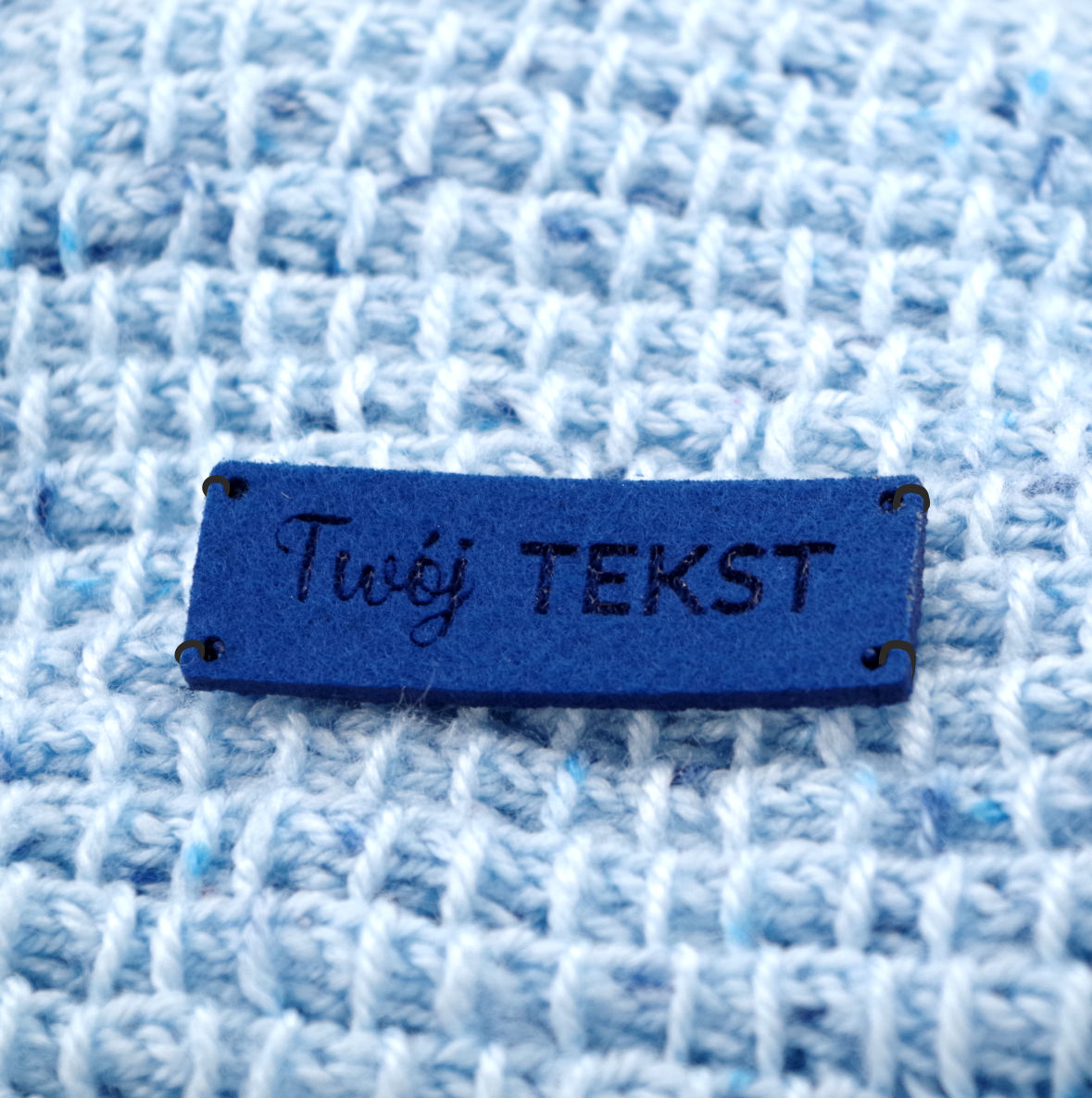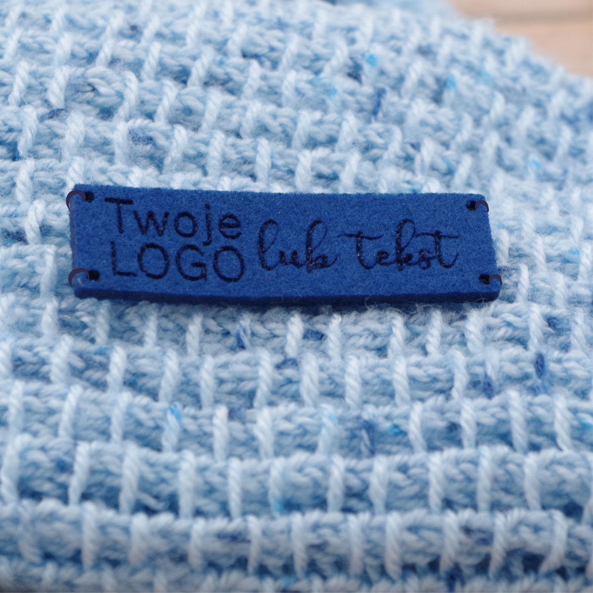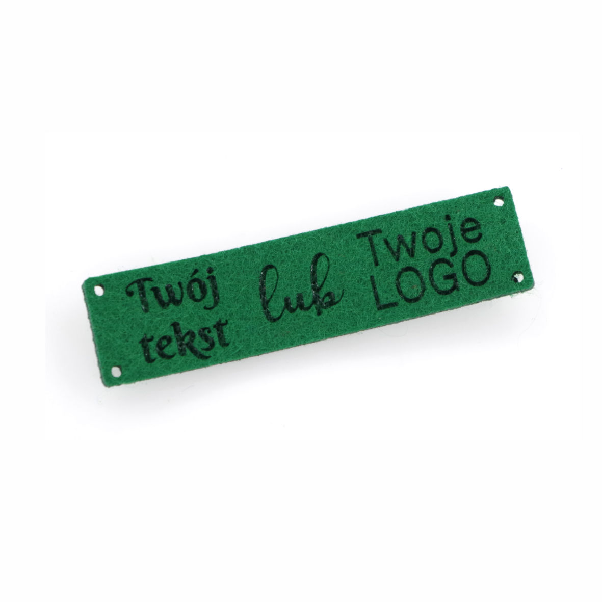 Personalizowana prostokątna metka z filcu z logo lub napisem.