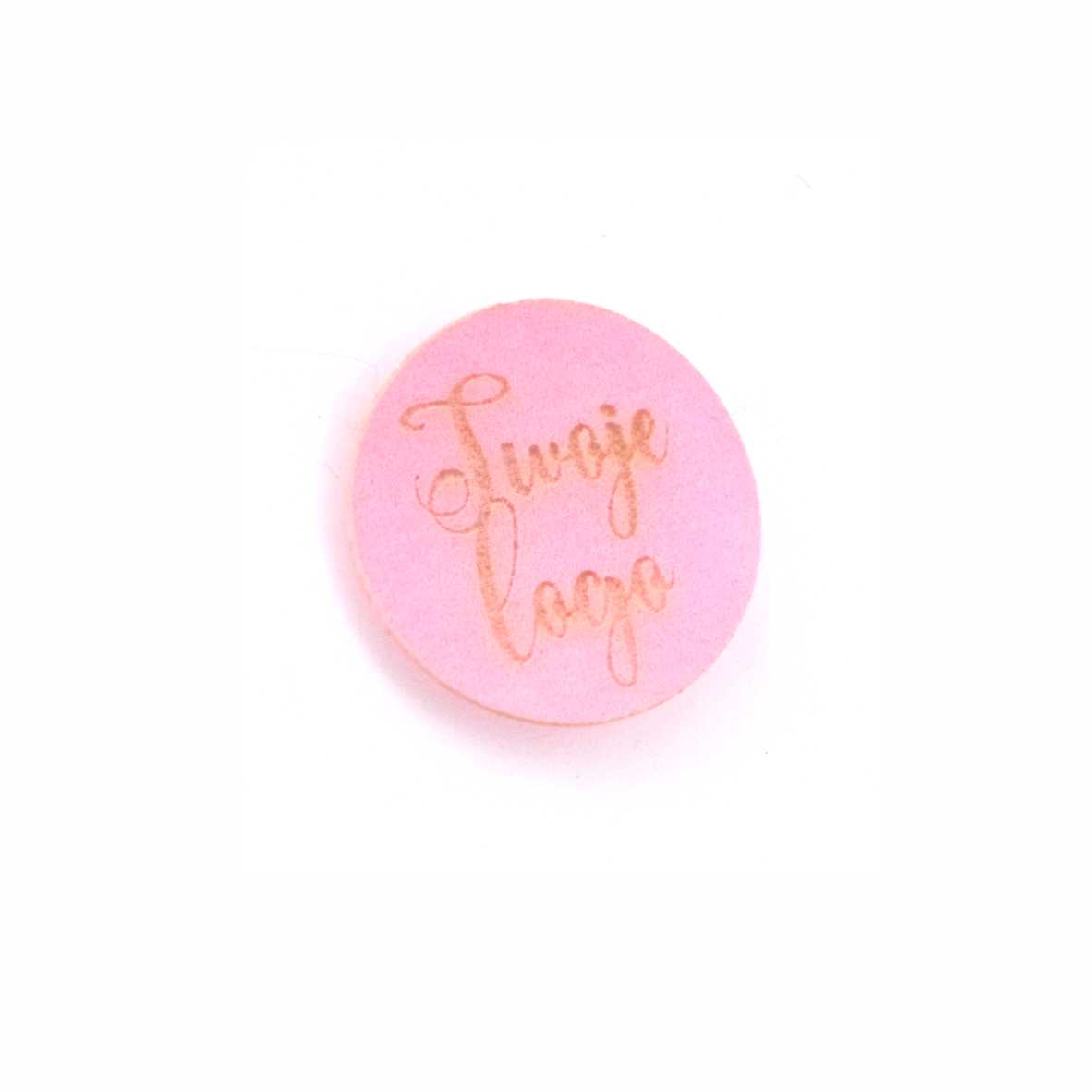Personalizowana okrągła metka z washpapy z logo lub napisem.