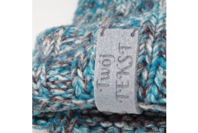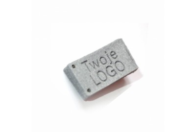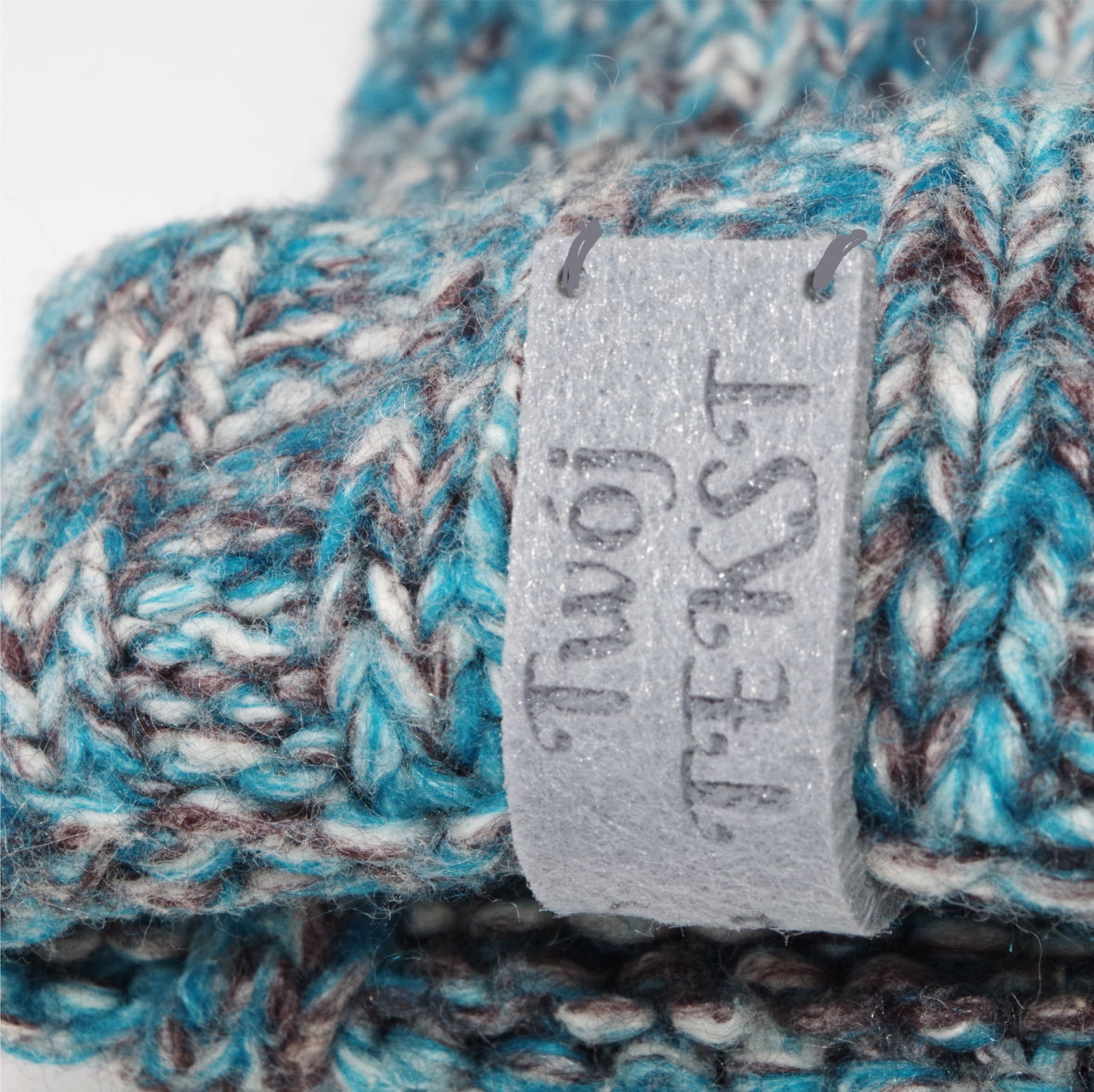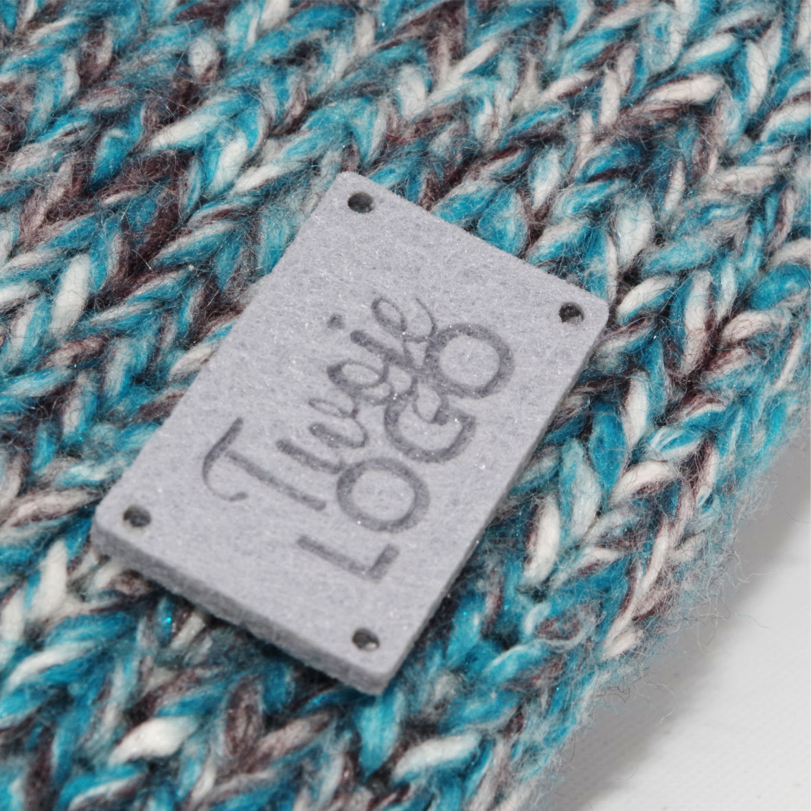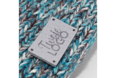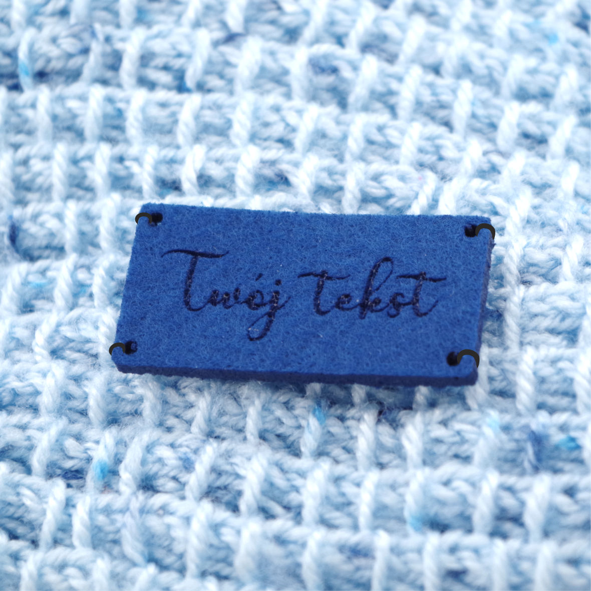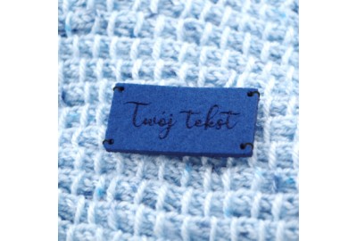 Personalizowana prostokątna metka z filcu z logo lub napisem.