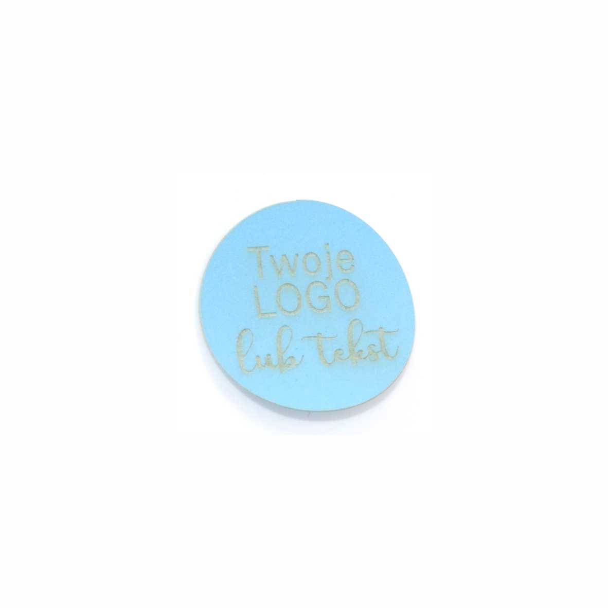 Personalizowana okrągła metka z washpapy z logo lub napisem.