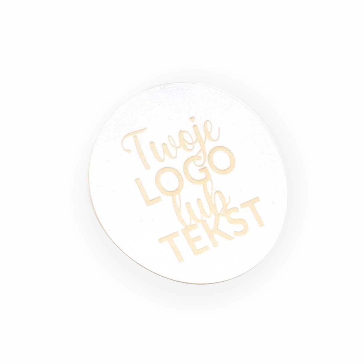 Personalizowana okrągła metka z ekoskóry z logo lub napisem.