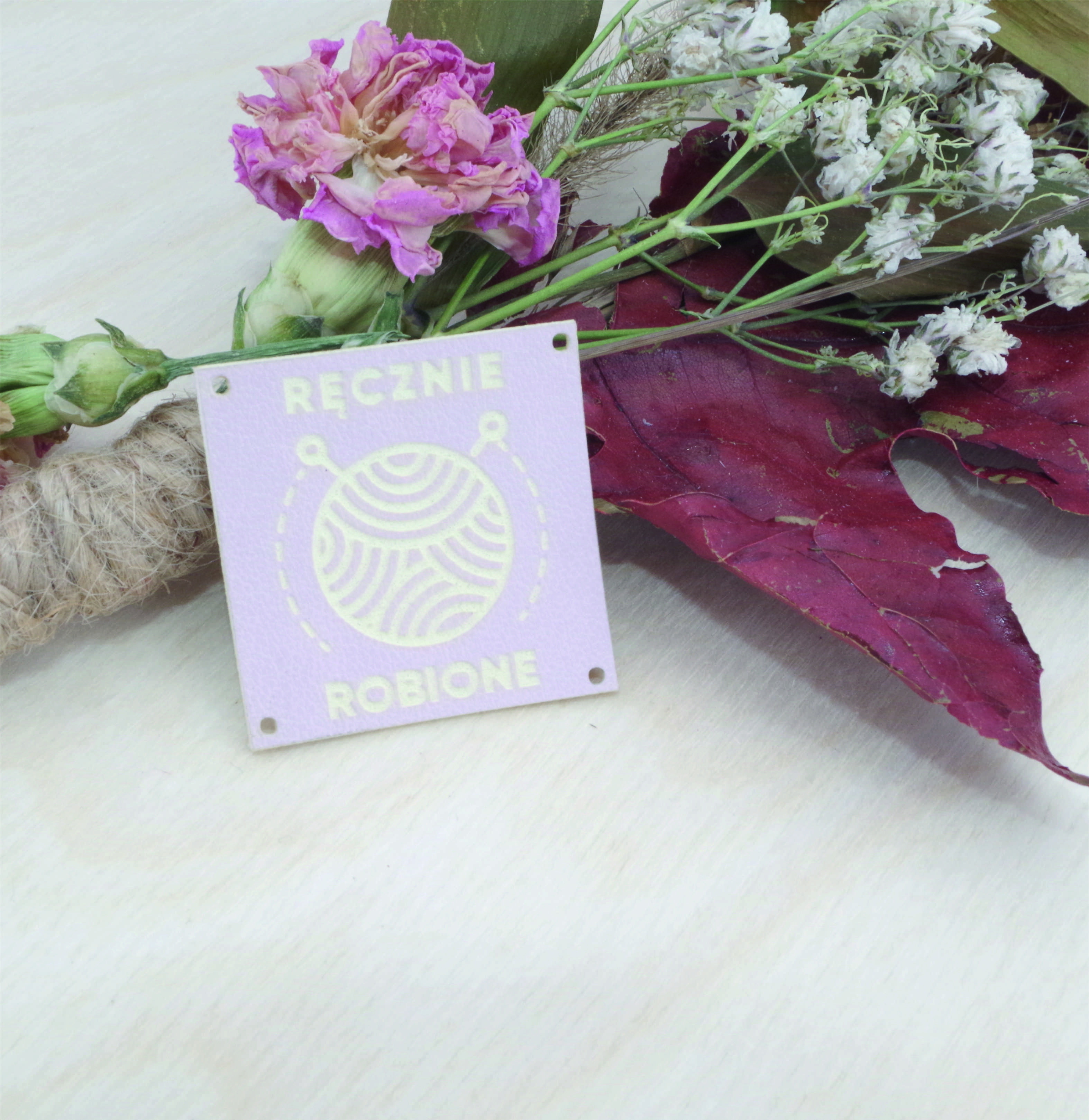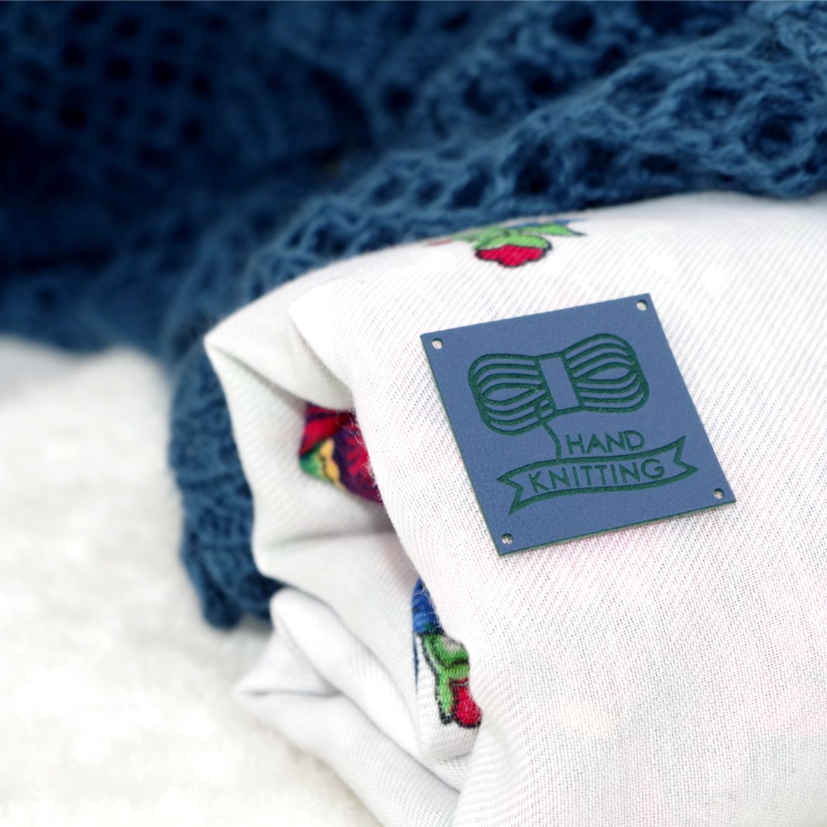 Metki z ekoskóry "hand knitting włóczka" - 10 sztuk