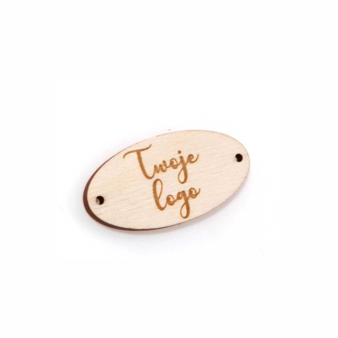 Personalizowana owalna metka ze sklejki z logo lub napisem.