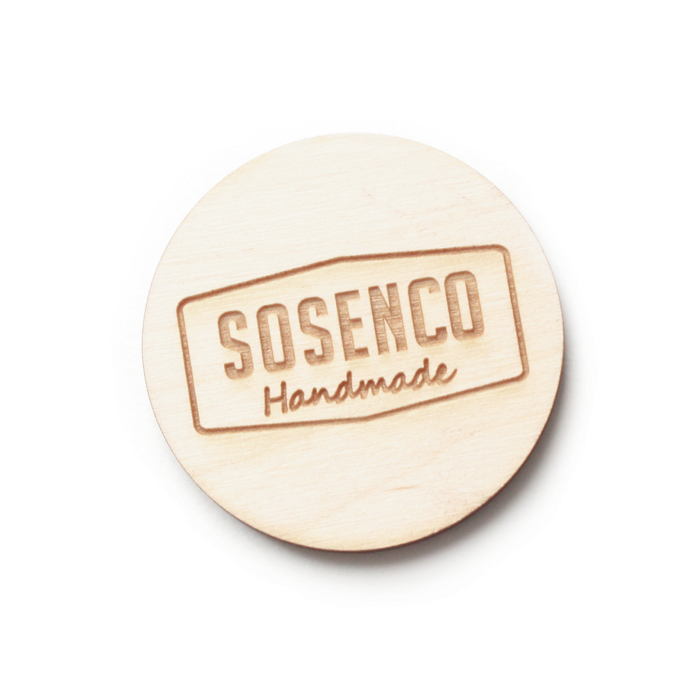 Personalizowana okrągła metka ze sklejki z logo lub napisem.
