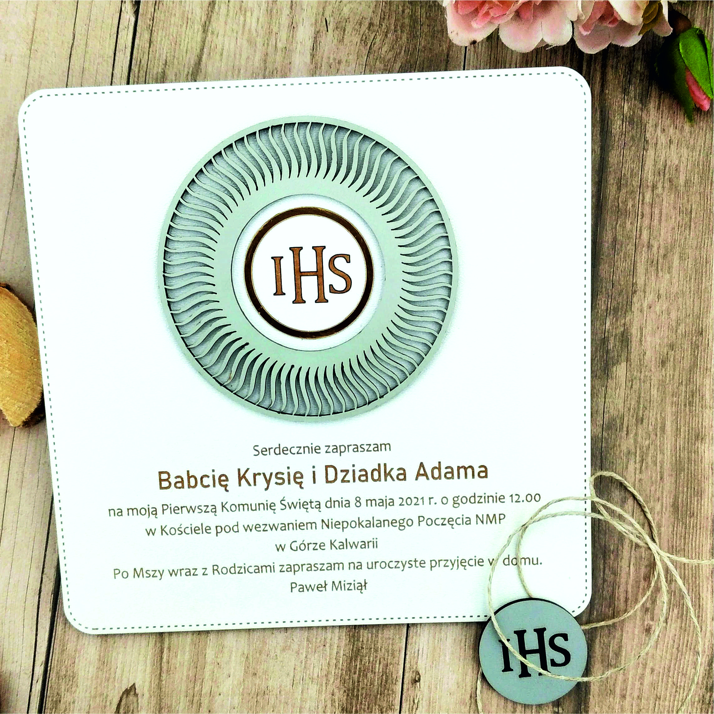 Zestaw 10 personalizowanych zaproszenień 3D na Komunię z kopertami.