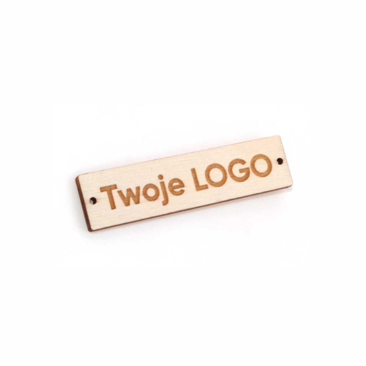 Personalizowana prostokątna metka ze sklejki z logo lub napisem.