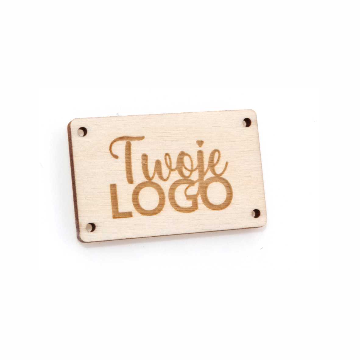 Personalizowana prostokątna metka ze sklejki z logo lub napisem.
