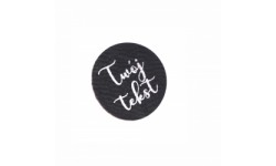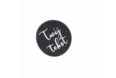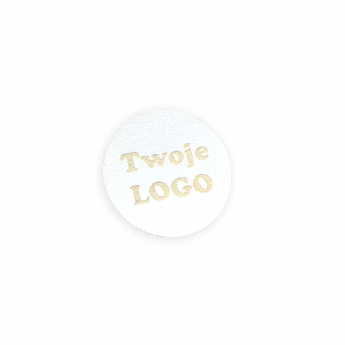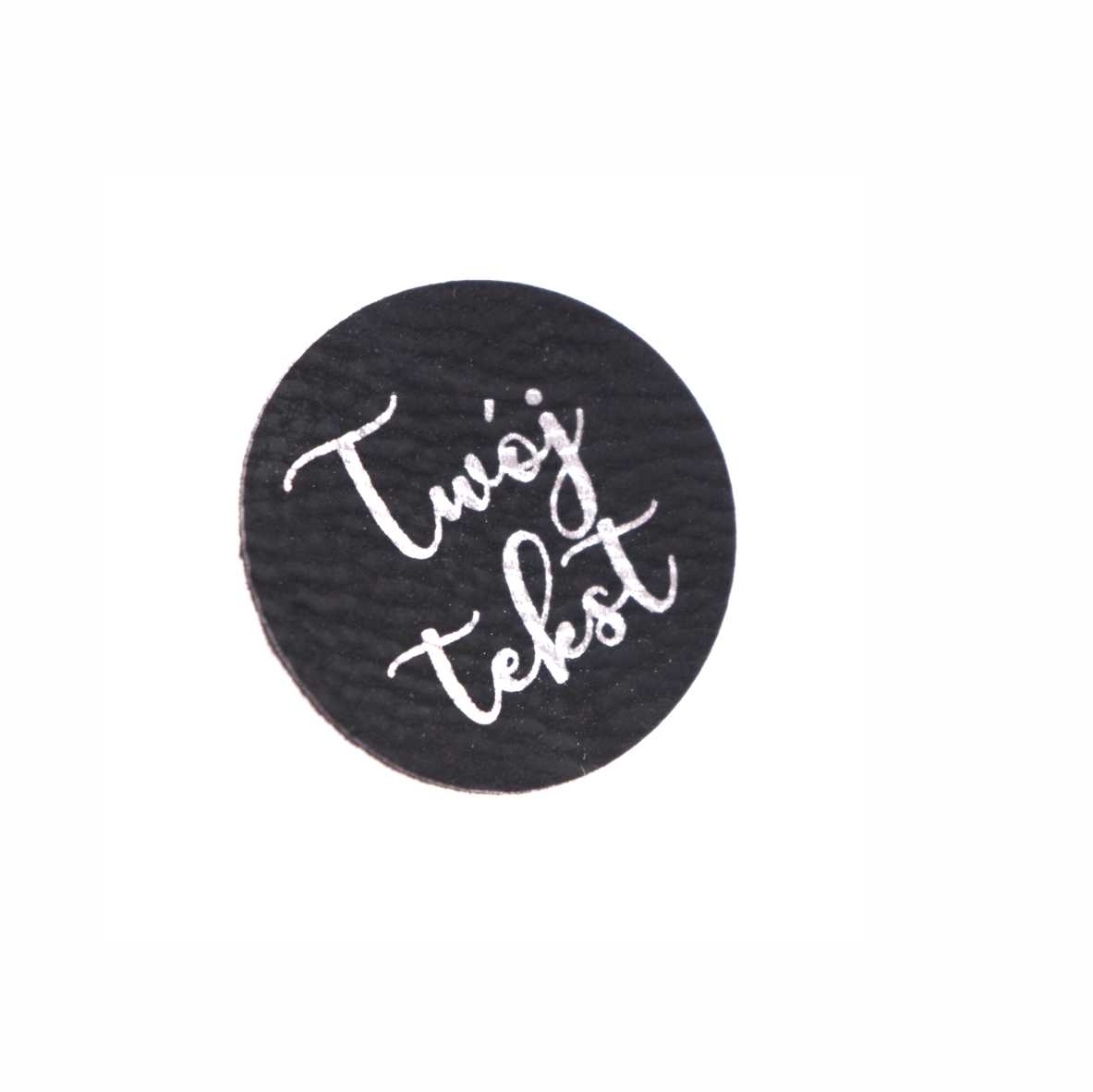 Personalizowana okrągła metka z ekoskóry z logo lub napisem.