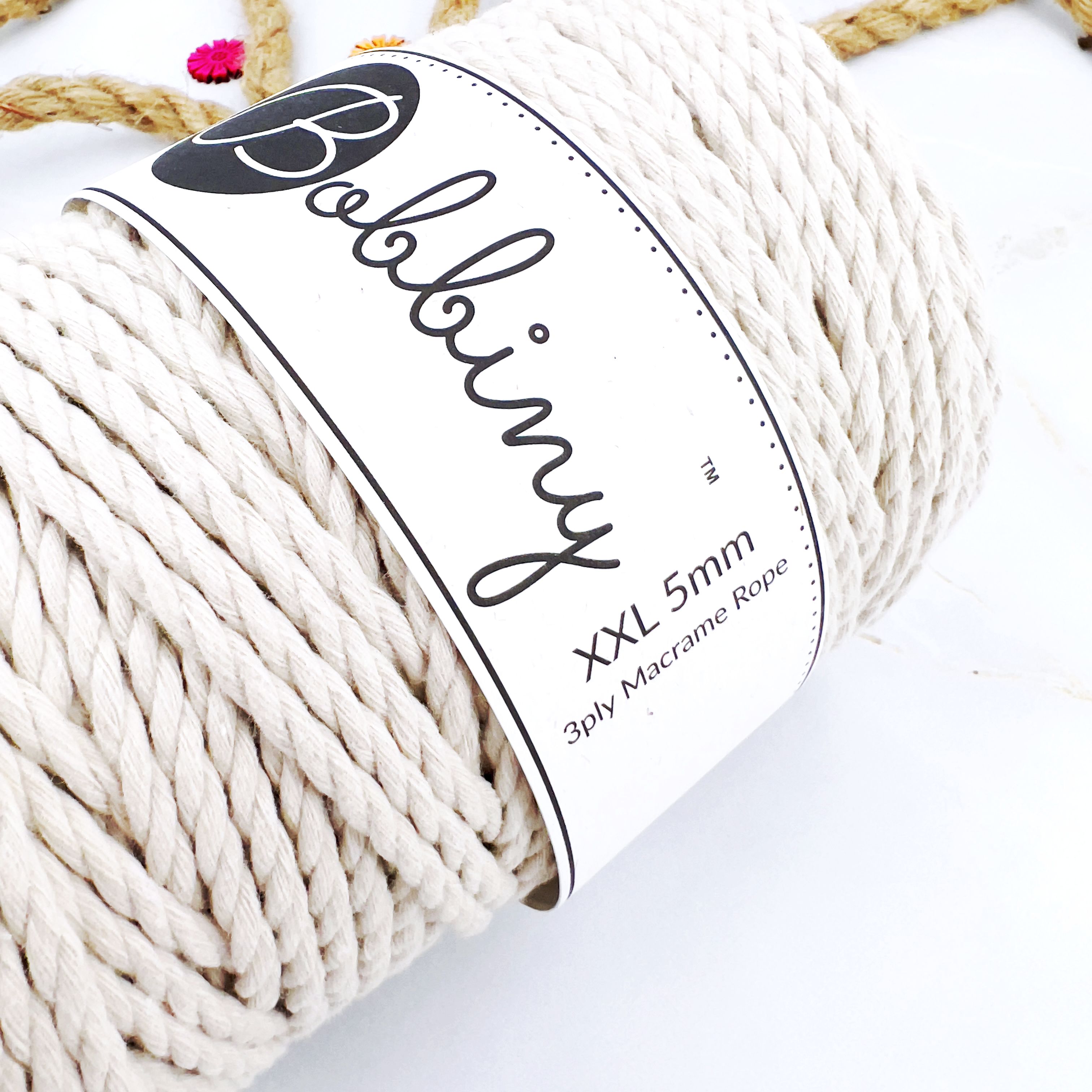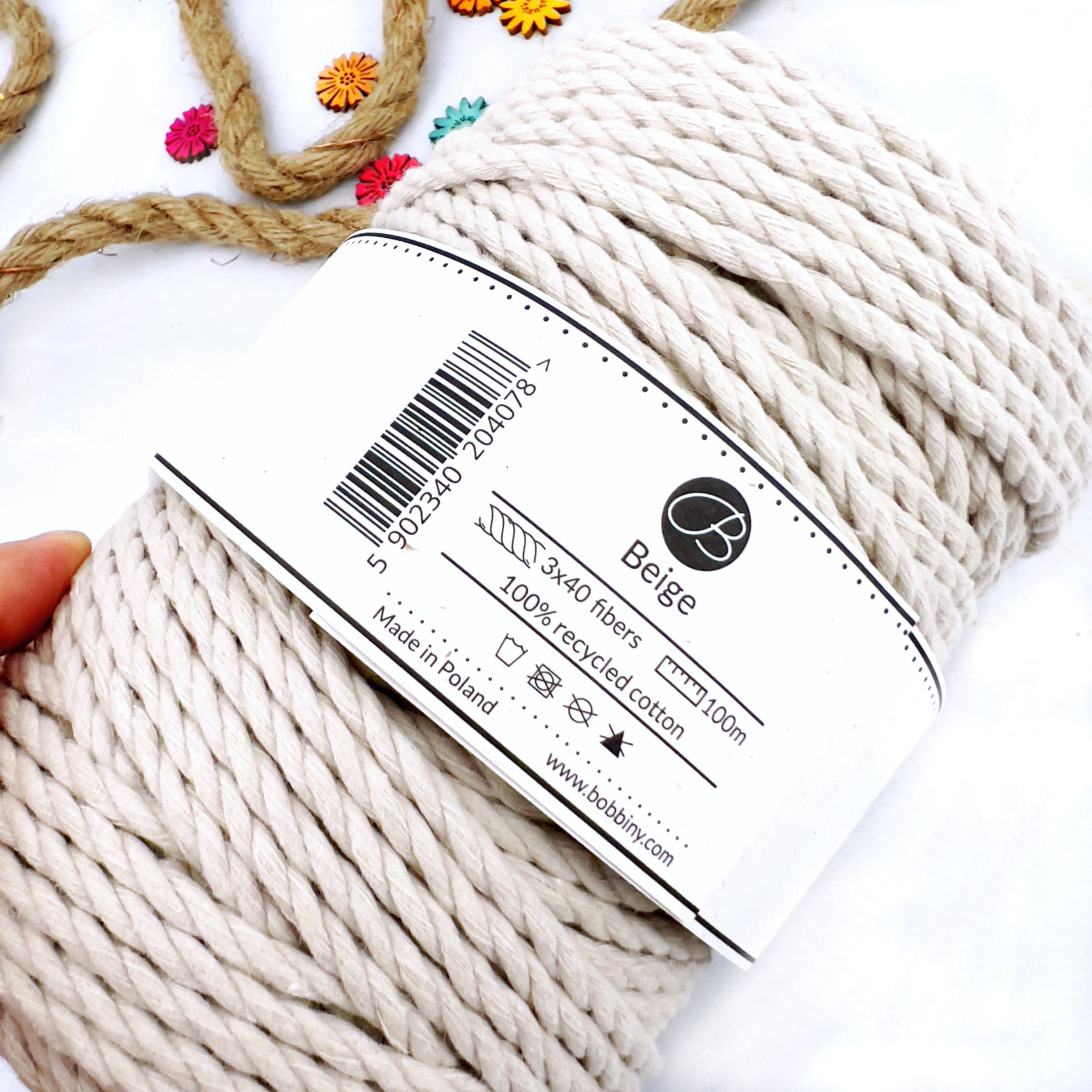 Sznurek do Makramy 3PLY 5mm 100m Beż