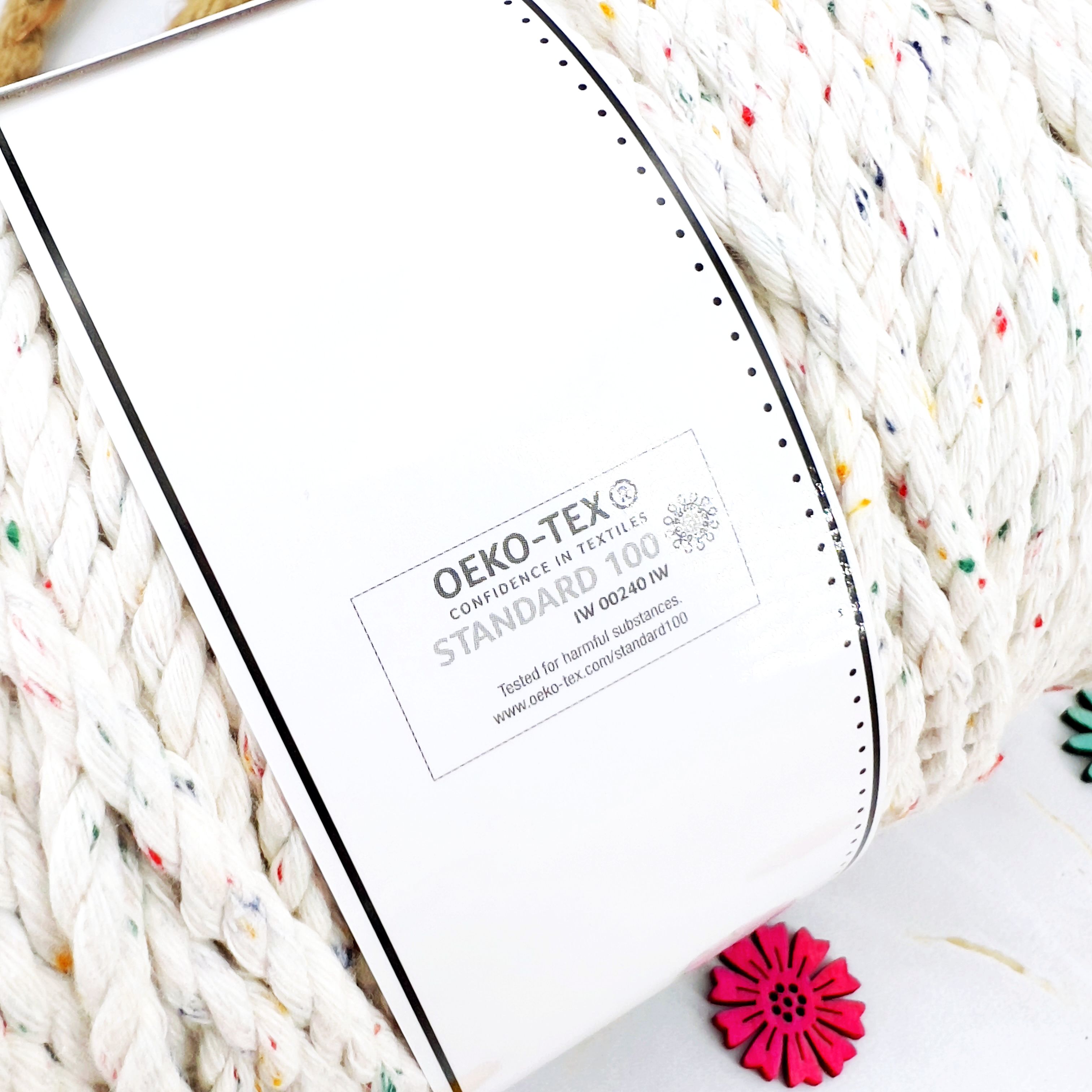 - Sznurek posiada certyfikat STANDARD 100 by OEKO-TEX w klasie I, co oznacza, że jest bezpieczny i może być stosowany nawet w produktach dla niemowląt i dzieci do lat 3. Produkt jest wolny od substancji szkodliwych w stężeniach mających negatywny wpływ na stan zdrowia człowieka i środowisko.
