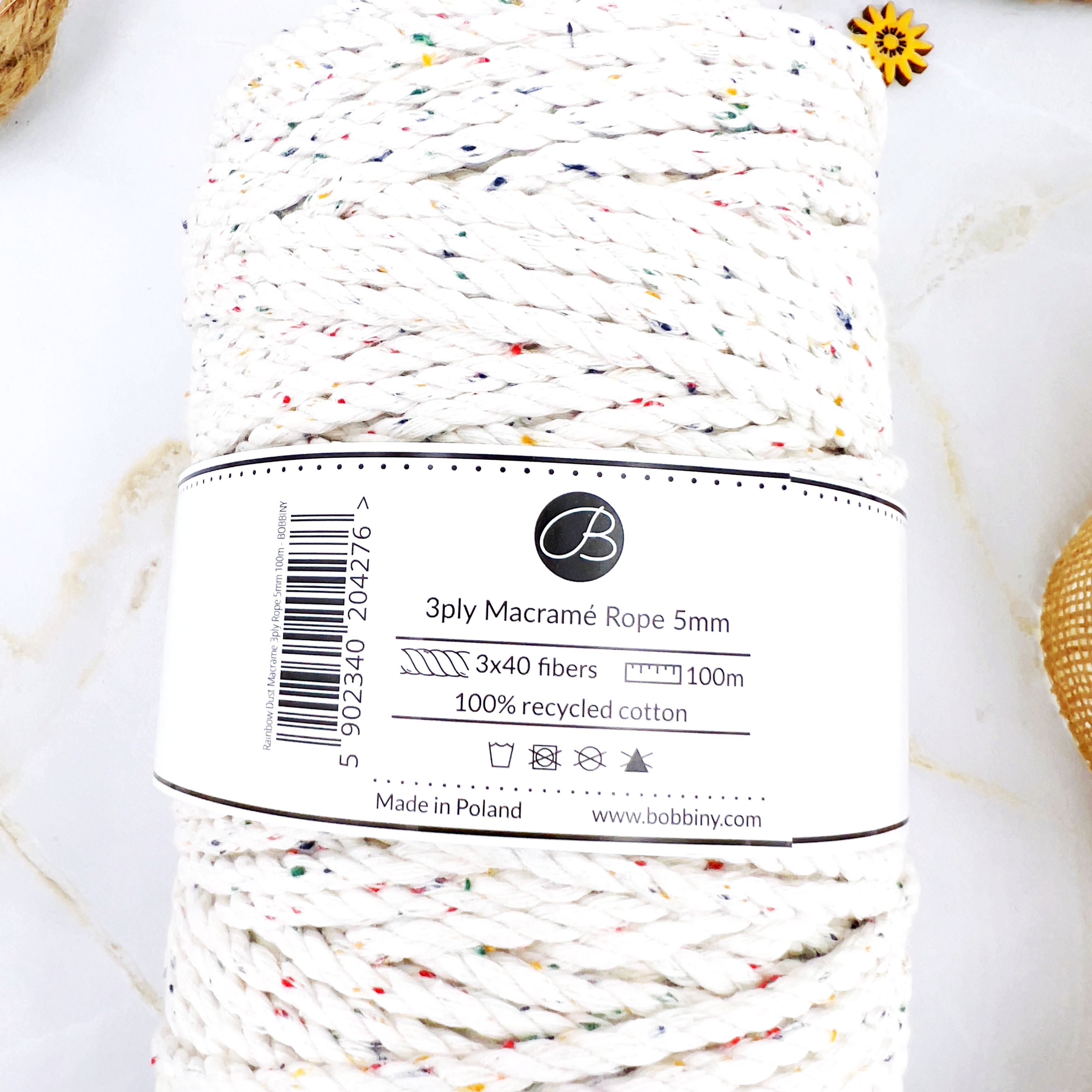 Sznurek do Makramy 3PLY 5mm 100m Tęczowy Pył