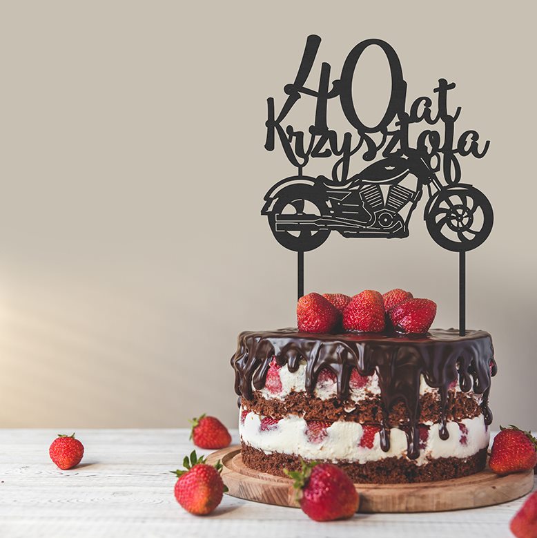 Topper, ozdoba na tort, wykonany z matowej czarnej plexi.